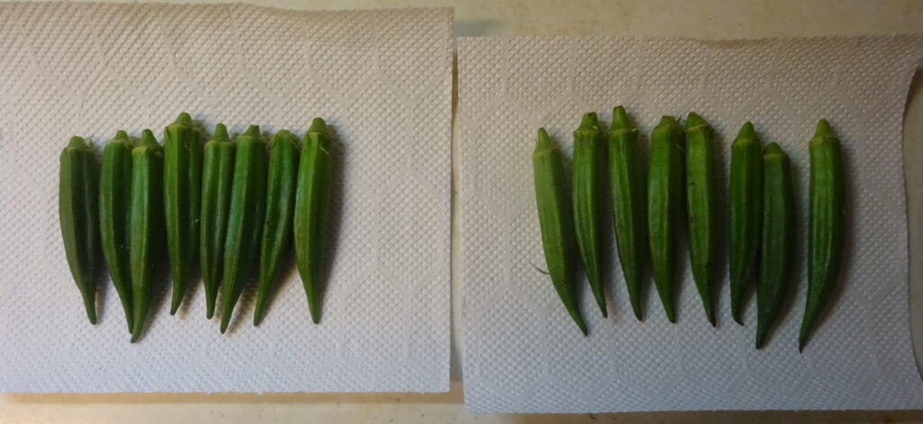 国産の オクラ(オクラは ぶりの(ほう)が いいとされております。何故なぜならば、大きくなると オクラは すじが 出来てくる とされているからであります。ところが、以下に 言及する スーパー・マーケットでは、誠に遺憾なことに、大きい オクラとして 高い価格で 売っているのであります。ちなみに、消費者は 分からない と思っているのでありましょうかね。なお、そのように 消費者が分からない ということは ないのであります)