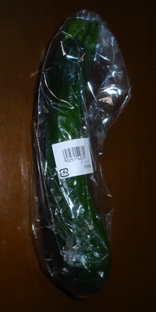 国産の ズッキー二(冷蔵庫に 立てて 保存すると いいとのことであります)