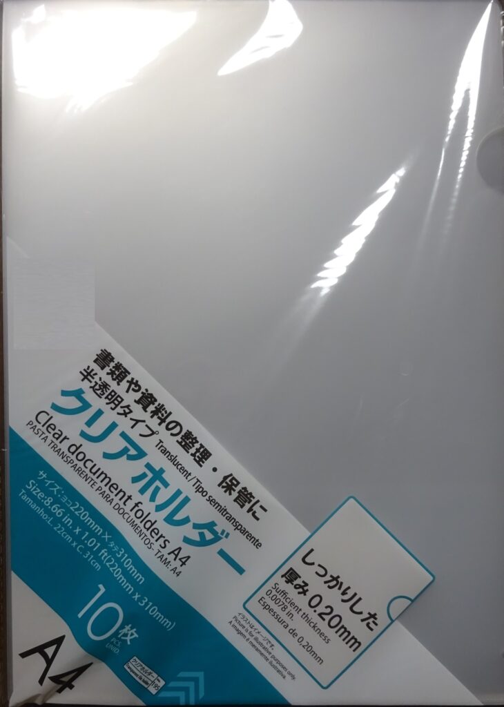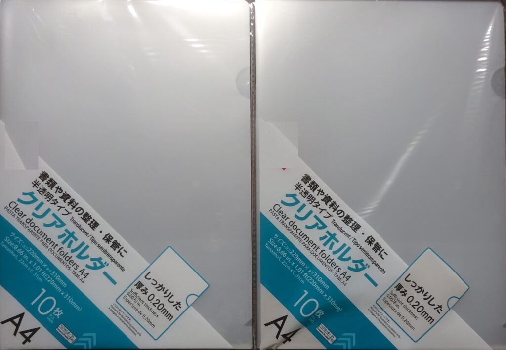 クリア フォルダー 20枚(この場合は、クリア ファイルと言った方が 正しいです)