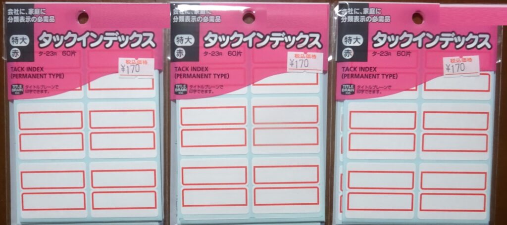 タッグ インデックス 3袋(ここでも、料金が値上がりしています。因みに、去る 一昨年の8月12日(金)の「菜食のおかず・131(買い物)」のブログの上段に、