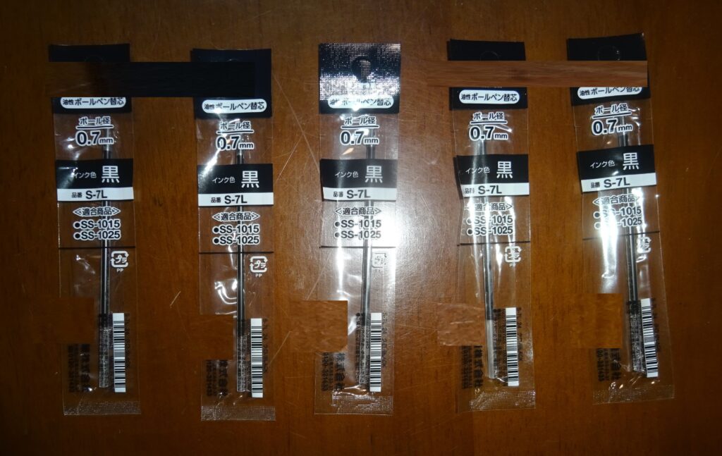 ボールペンの替え芯 黒(“L”、すなわち、長い)を 前回 5本 買おうと思いましたが、前述いたしましたように 1本しか ありませんでした。(前々々回は、在庫が切れていましたので、買えませんでした。それで、このボールペンの替え芯が なくなってしまうのかどうかを訊きました。すると、誠に有り難いことに、「今の処は。」とのことでありました)、そして、今回 ボールペンの替え芯 黒を 5本 買いました)