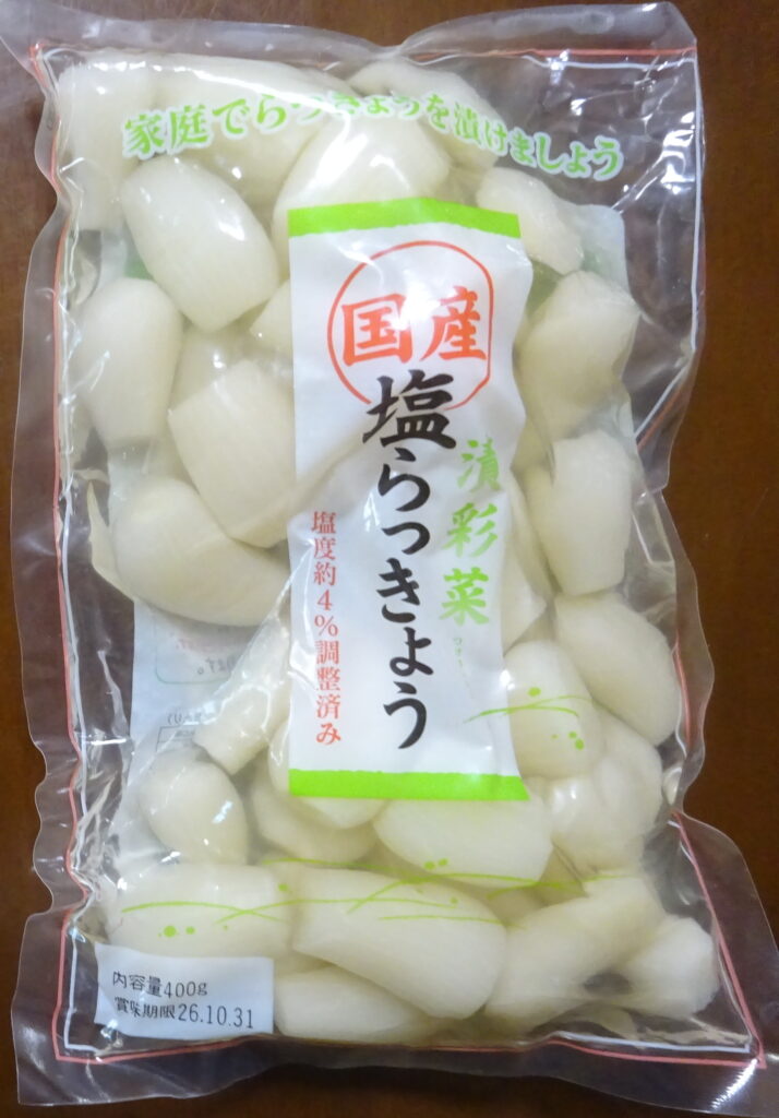 国産らっきょうを 上の容器に入れ 国産の らっきょう漬けの為の酢を注ぎ 冷蔵庫で保存します。因みに、らっきょうが 液から出ないように ラップなどで 落し蓋をします。なお、説明書によりますと、ときどき かき混ぜ乍ら 10日~2週間 漬ければ できあがりとのことであります