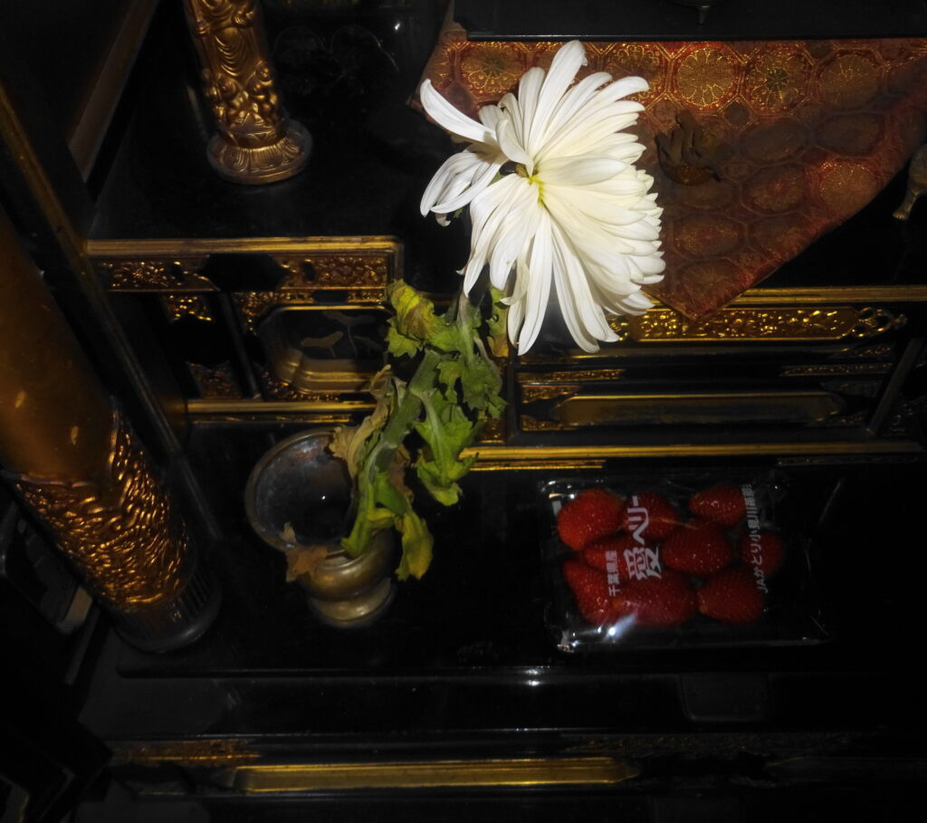 御仏壇(これに 下の画像の 供えた 父親の好物だった 国産の 梅干