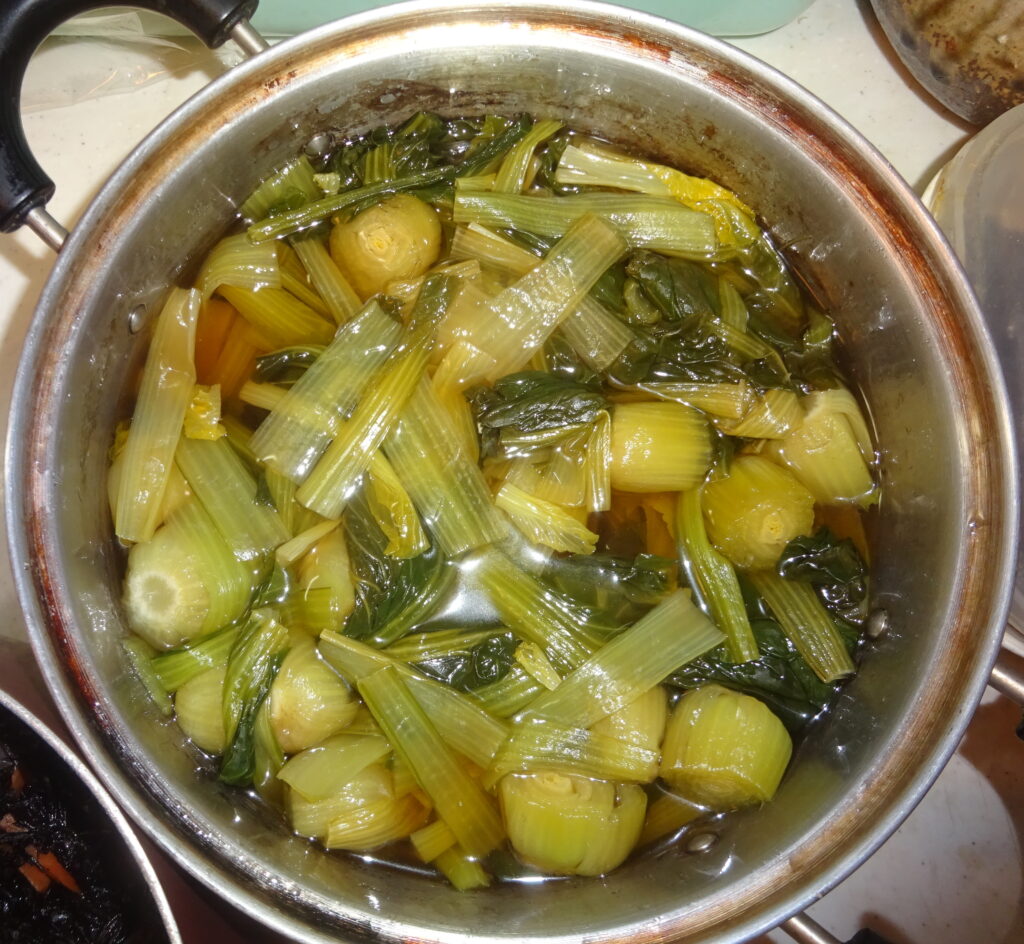 「(前略)小松菜には 鉄分(元素記号:Fe)が 含まれていますので、血中の hemoglobinヘモグロビンが 少なめである 父親に好ましいです。ついながら、当方は そうは思わないのですが、家政婦によりますと、小松菜は くせがあるとのことでした。但し、この家政婦には、ホウレンソウではなくて 小松菜と伝えてあります。しかも、この家政婦がた 小松菜がかたかったです。 ちなみに、この小松菜は 父親も食べるのです。なお、しゅんではないので、小松菜の煮浸にびたしを 上記の4月6日(水)から中断していました。しかしながら、霜が 2回 降りる頃が 小松菜のしゅんとのことでありますので、今期も 小松菜の煮浸にびたしを始めました。なお、前回 家政婦によりますと、小松菜をがしたとのことでした。ついながら、この家政婦によりますと、誠に有り難いことに しゅんの小松菜は 美味おいしい とのことでした。なお、去る 8年前の10月16日(木)の『身土不二しんどふじ(今日のおかず)』のブログの中段に、