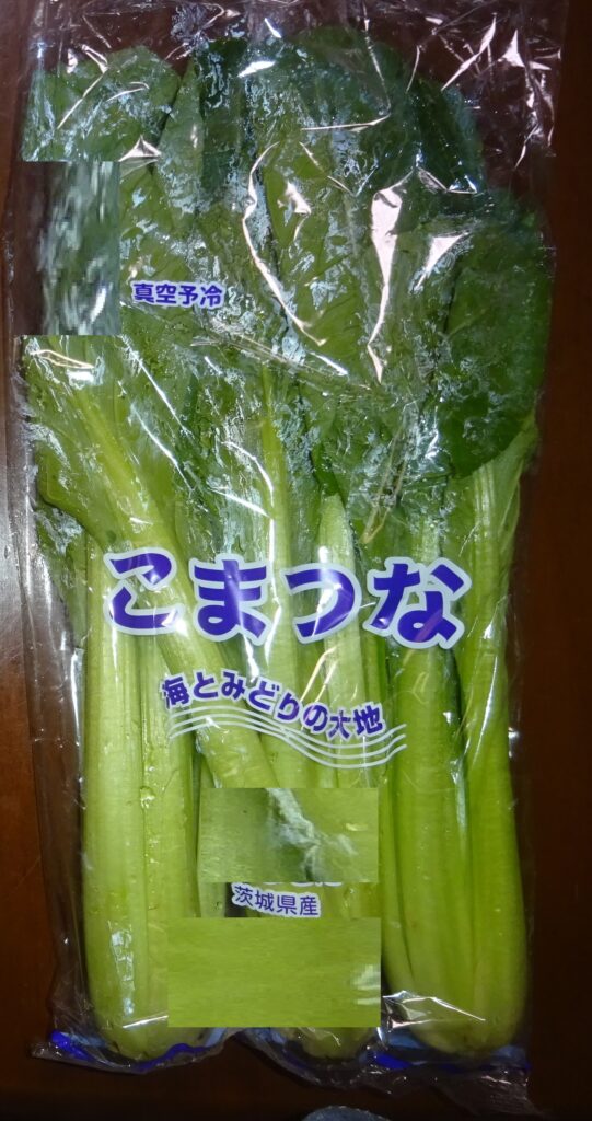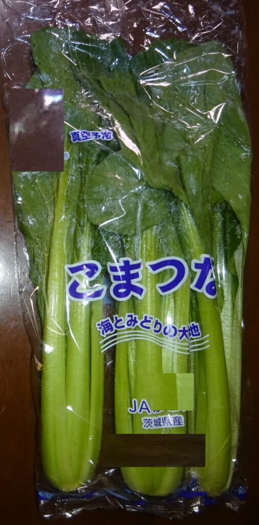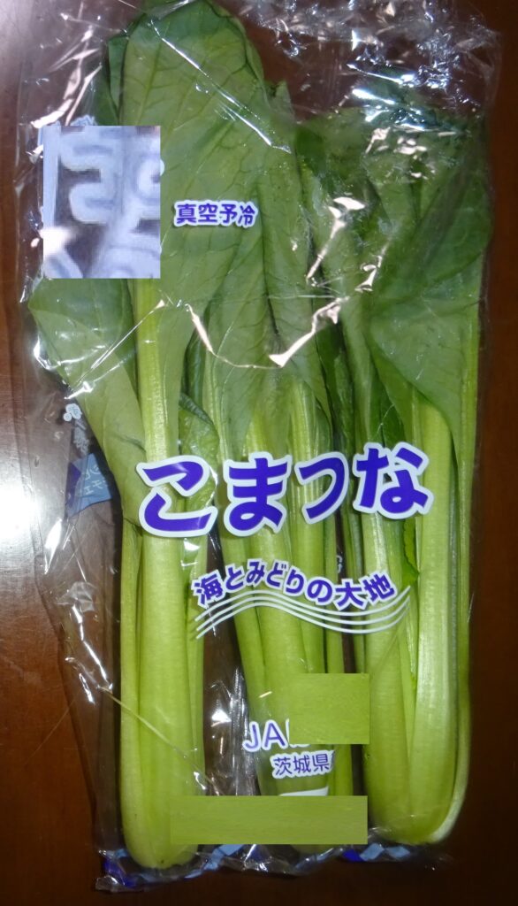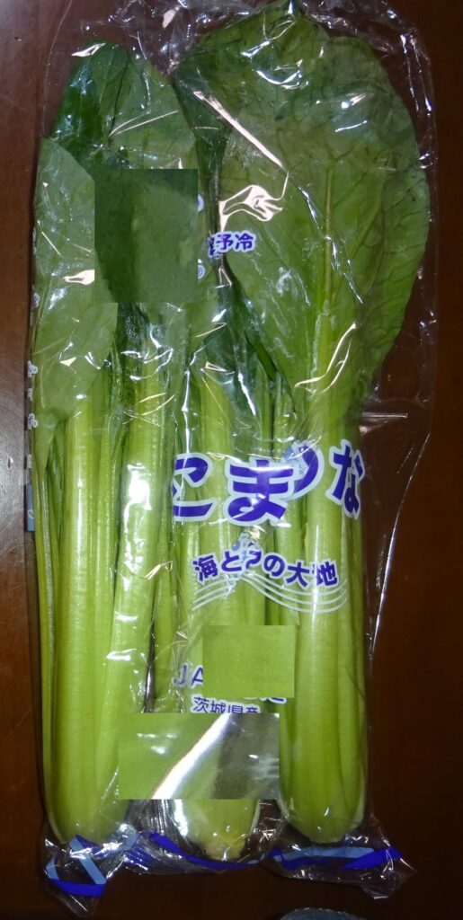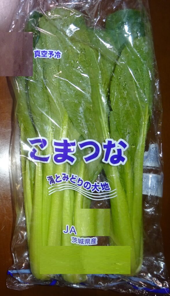 なお、下の画像の小松菜が 真空予冷されていることを伝えました。すなわち、近年 真空予冷が、主流で行われています。つまり、真空にして 野菜の水分を蒸発させ その気化熱を野菜から うばうことにより、野菜をやすのであります。ようするに、野菜から うばう水分は、全体の2%であるとされております。但し、余分な水分であればいいですが、野菜の水分をうばい 乾燥させていいものであるか との話になりました。ついながら、家政婦さんによりますと、小松菜の調理を するのに 時間がかる とのむねでありました。ちなみに、その家政婦さんによりますと、追加で 30分 ても やわらかくならないとのことでありました。但し、これは、夏季の小松菜の話であります。なお、去る 一昨年おととしの12月5日(木)の「家政婦さんの入院・続報152」のブログの中段やや下に、