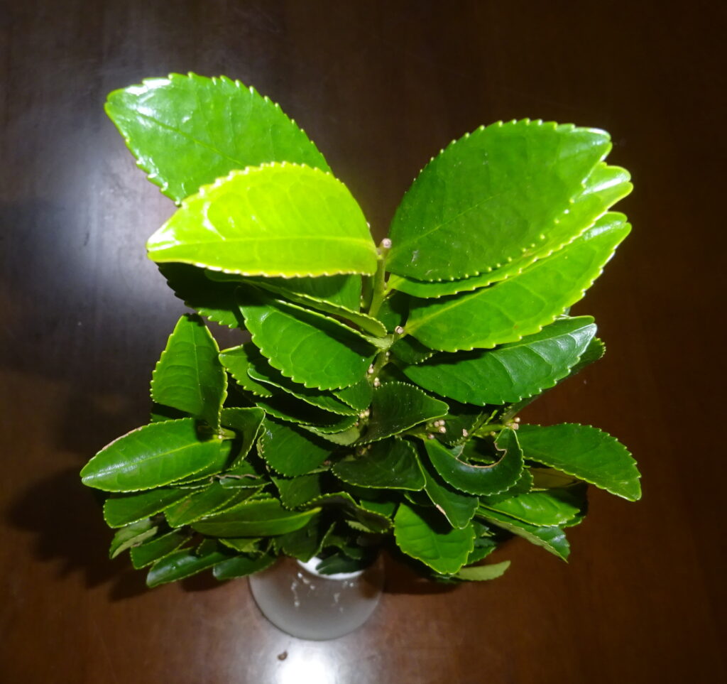 更に、家政婦さんによりますと、小平駅の北口前の花屋 そして 当方が伝えた 東京街道沿いのそれ すなわち 2ヶ所では、取り寄せないと 支那産の榊しかなかったとのことでありました。それで、下の画像の榊は 小平駅南口の花屋で購入した国産であります。但し、その家政婦さんとの話で、束ねていなくて 唯 切っただけの榊との内容になりました。(後略)」と記させて頂きました。