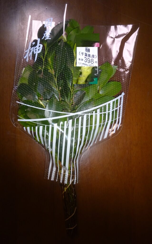 榊(国産)(家政婦さんによりますと 一対でなく 一つが ¥300円とのことでありましたが、実際には 上記のように ¥398円(税抜。因みに、税込では ¥437円)でありました。なお、そのことを 直面化(精神分析[心理学]の用語です。簡単に言えば、指摘することです)しましたら、誠に遺憾なことに、別のスーパー マーケットの話であると 誤魔化していました)