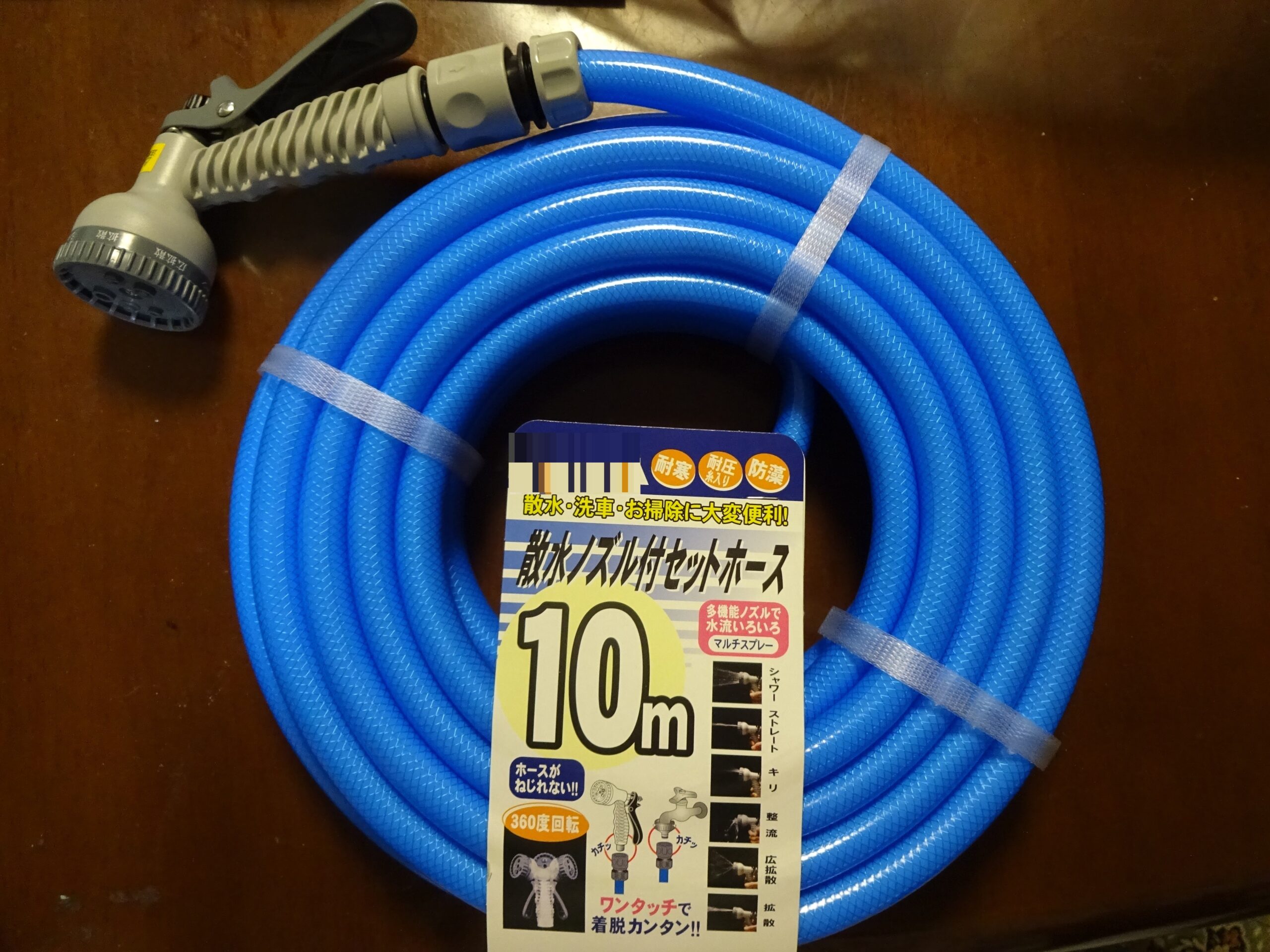 ならびに、自宅の庭に用いる訳でありますから 7m位のホースでいいと思われました。しかし乍ら、ホーム・ページ(英語:homepage)を見ましたら 最短でも10mのホースしかありませんでした。なお、価格は 1,275円(税込み)でした。