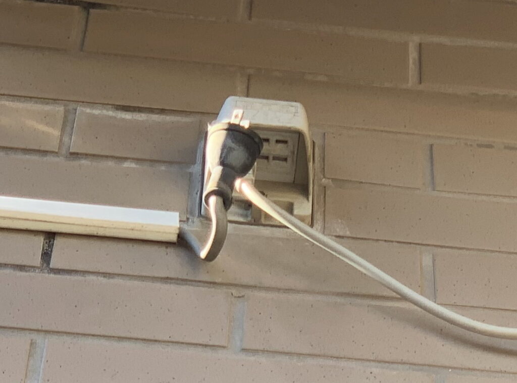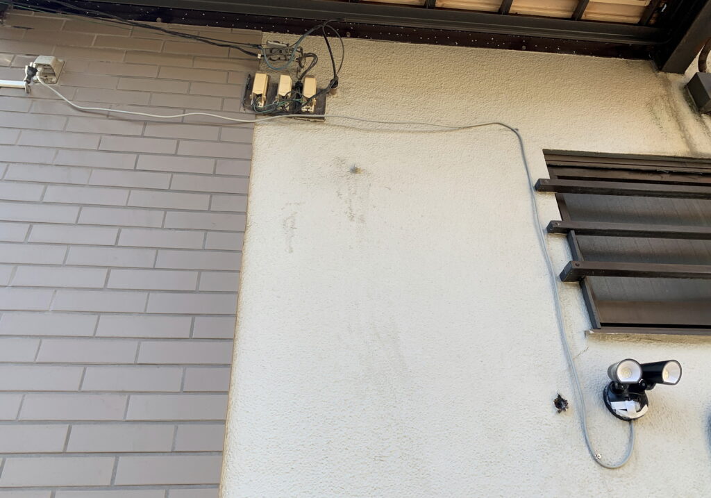 防犯センサーライトの設置(誠に遺憾なことに、その第一種電気工事士のかたは プラグを持たずに 電灯線の電源コードを引っ張って 抜いていました)