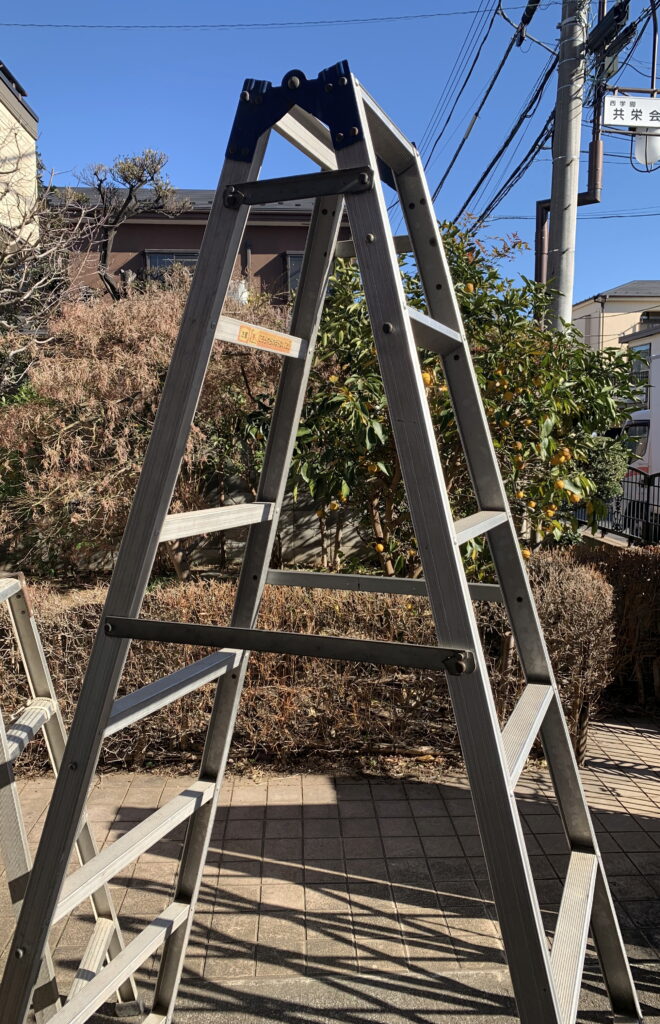 防犯センサーライトのために 用意した 脚立きゃたつ