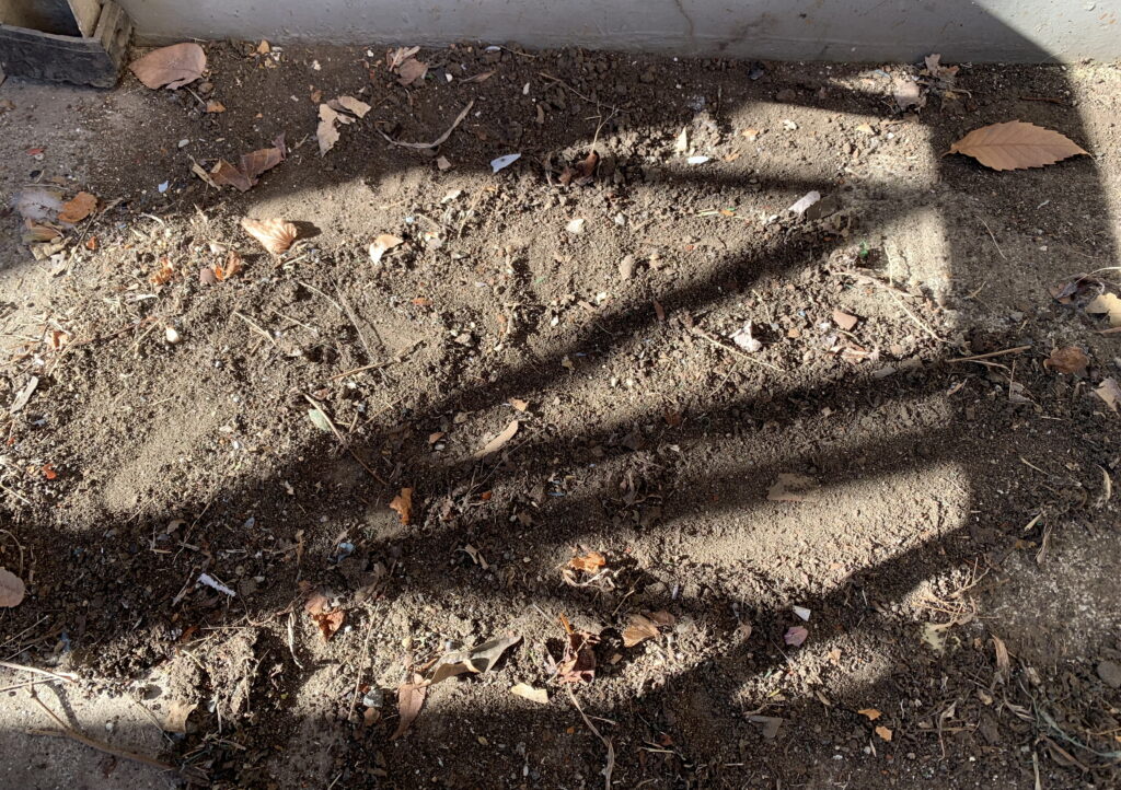 前述いたしましたように 脚立きゃたつを使うので 重い 物干ものほし台を移動しましたが、再度 もとの位置に戻しました