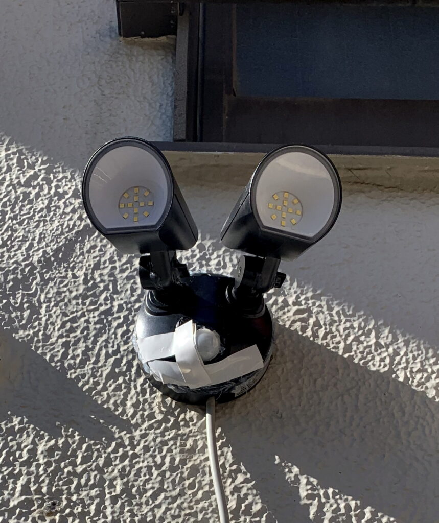 誠に有り難いことに、誠に危険でありましたが、防犯センサーライトの設置を完了しました