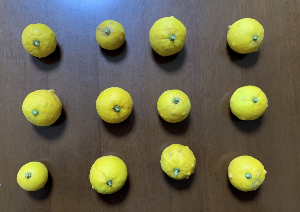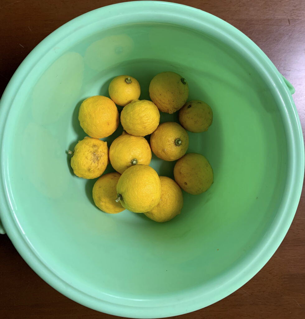当家の庭で 朝摘あさづみをした 柚子ゆずの実