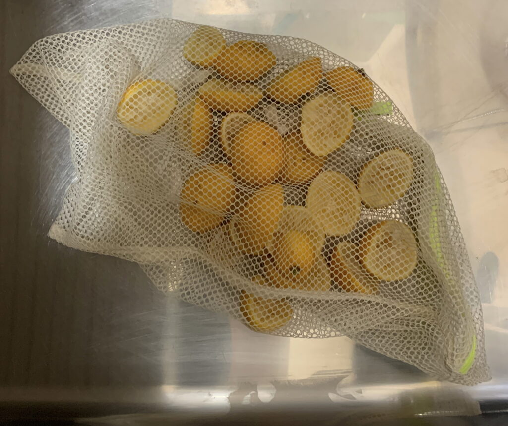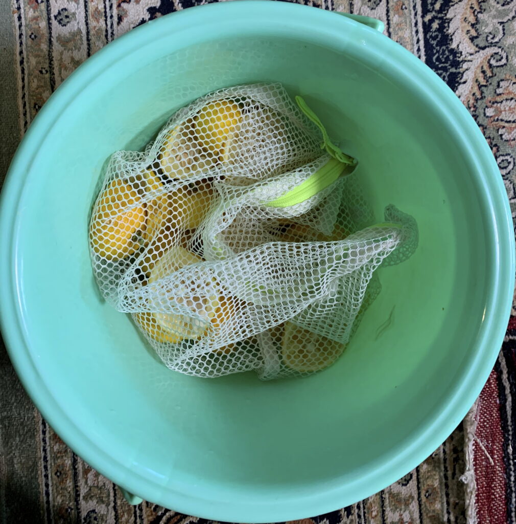 袋に入れた 柚子ゆずの実を入れた お風呂