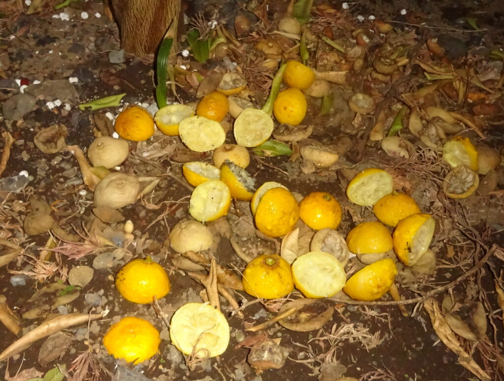 更に、今回は また 父親への供養と思い、当家の庭で 朝摘みをした 柚子の実を入れた お風呂の準備をしました。因みに、柚子の実の皮は 同じ柚子の木の為に 肥料にする目的で、その柚子の木の根元に置きました。なお、後は、土を掛けてやります。