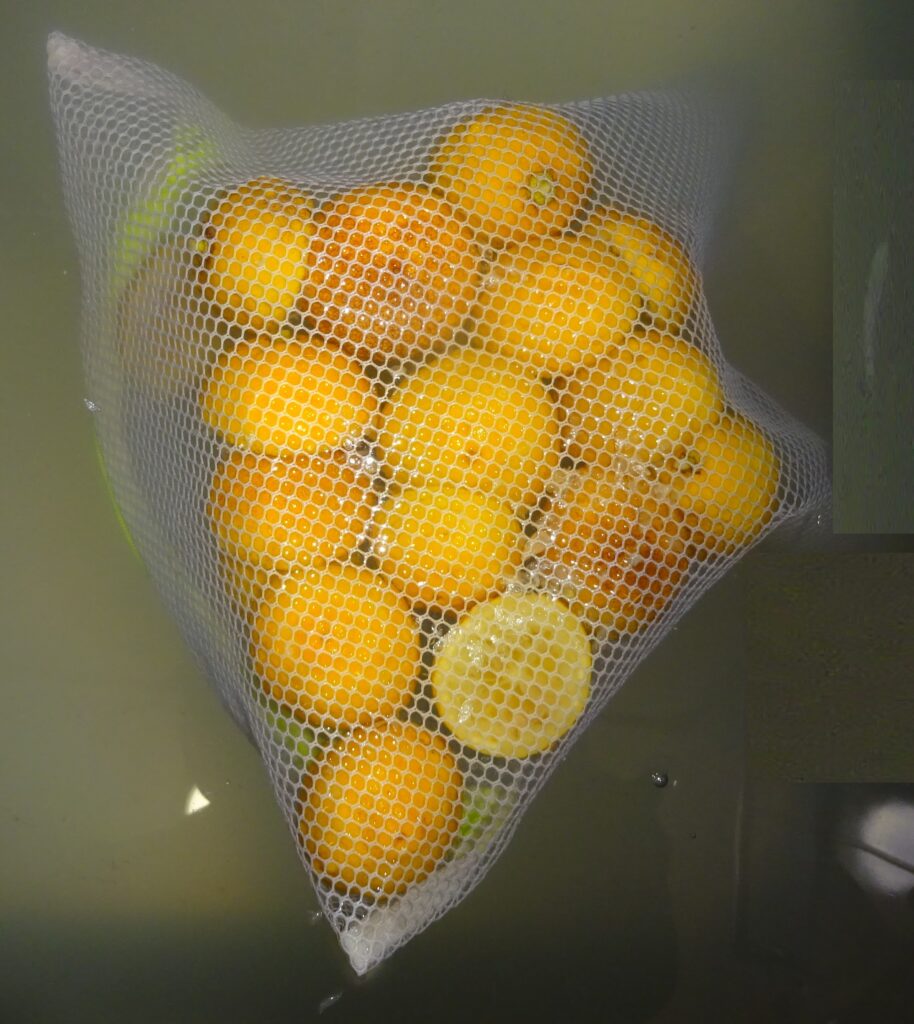 網の袋に入れた 柚子の実