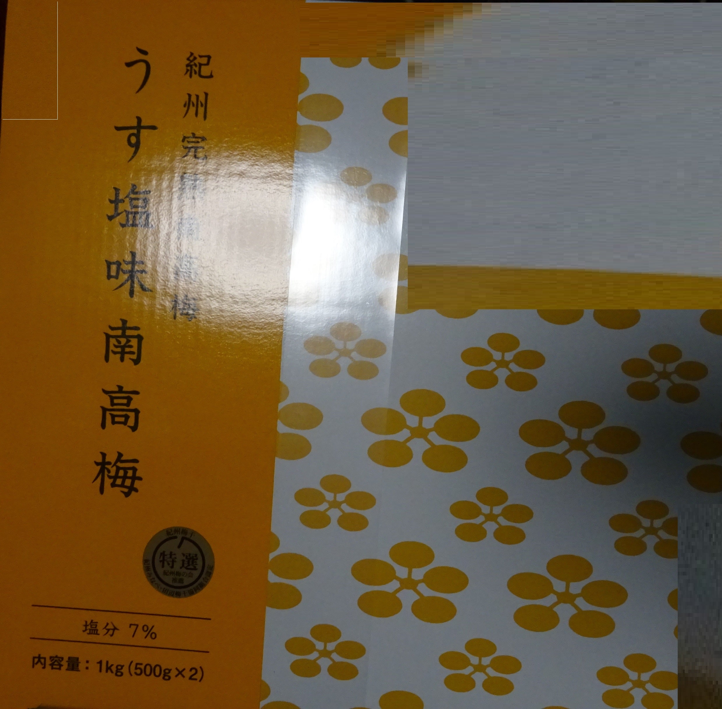 引き出物として、僧侶、家政婦 と 従兄弟の方々などに それぞれ 手渡した、減塩の南高梅の梅干し(1箱 すなわち 500g×2個入りを 3箱)