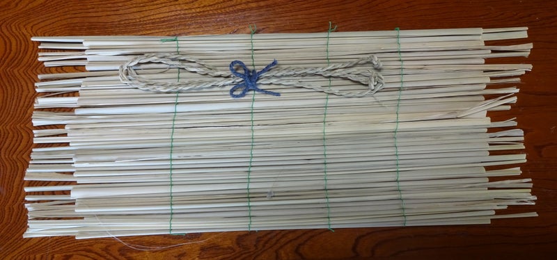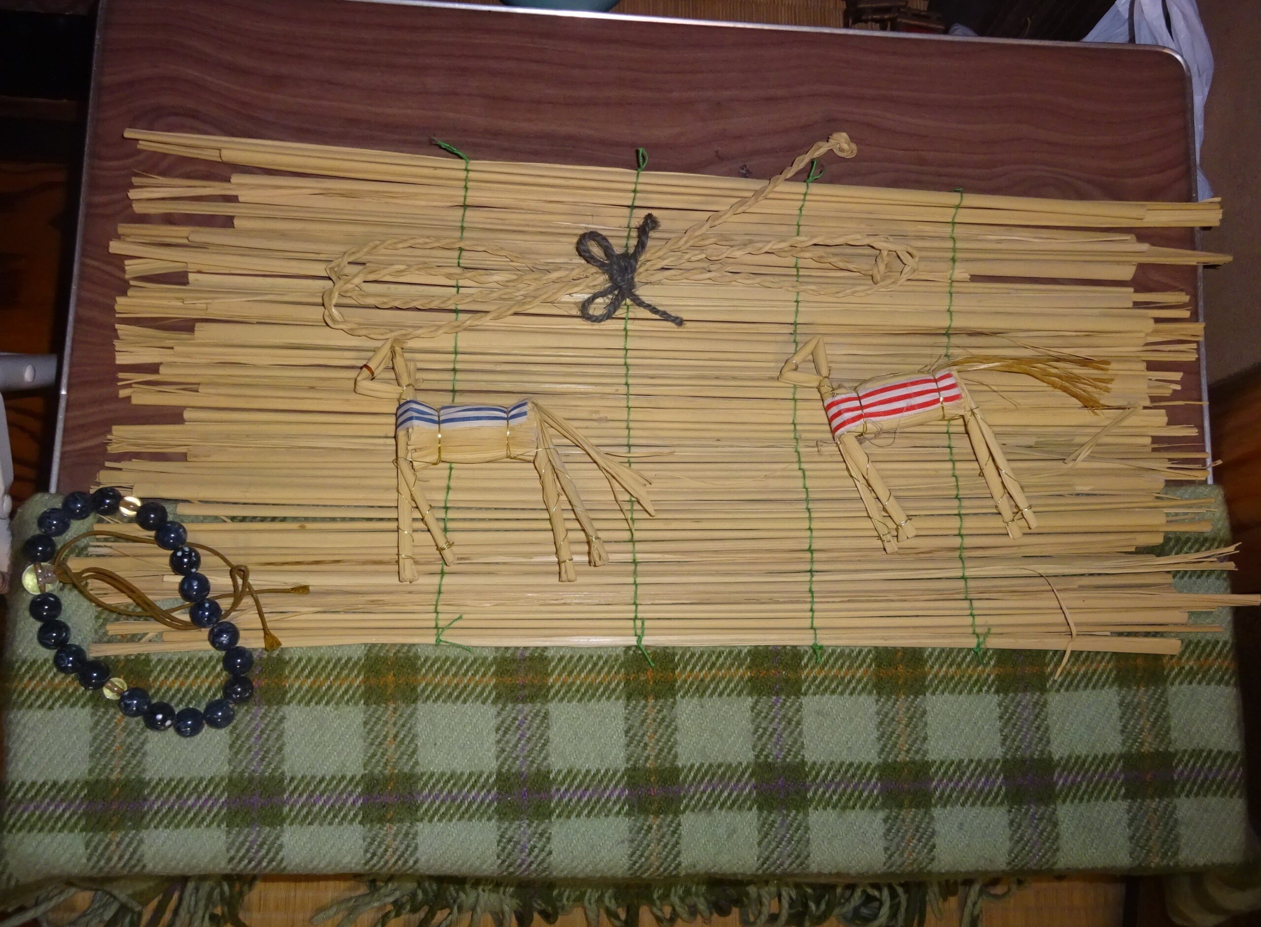 なお、盆棚(精霊棚 もしくは 先祖棚)の準備をしました。この盆棚の上に 下の画像の真菰を敷きました。この上には 初物の野菜 そして 果実などを供え、御先祖の霊を迎えます。因みに、馬牛は、御先祖様が 浄土の行き帰りに 馬に乗り 牛に荷物を引かせるに お使いになります。