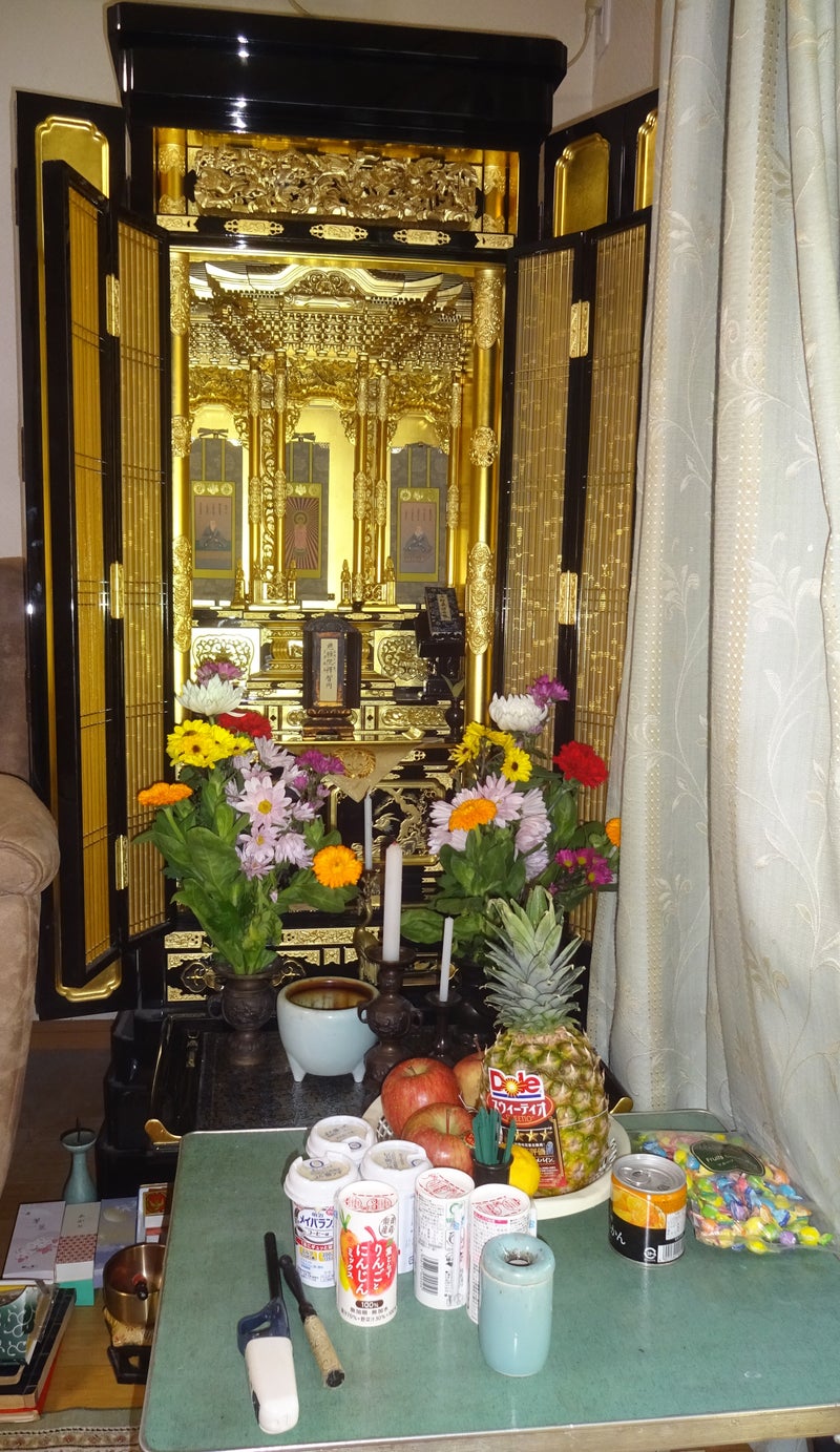 なお、午前9時半に まず 義理の兄が到着しました。それで、西本願寺の僧侶は 説法があるとのことでありました。それで、東本願寺の僧侶は 読経のみですね と答えました。すると、説法があるから いいとのことでした。そして、義理の兄によりますと、浄土真宗は 何でも ありとのことでありました。それで、上記のように 母親の一周忌のときには、照恩寺の住職が 仏壇の小物の配置を変えたことを伝えました。