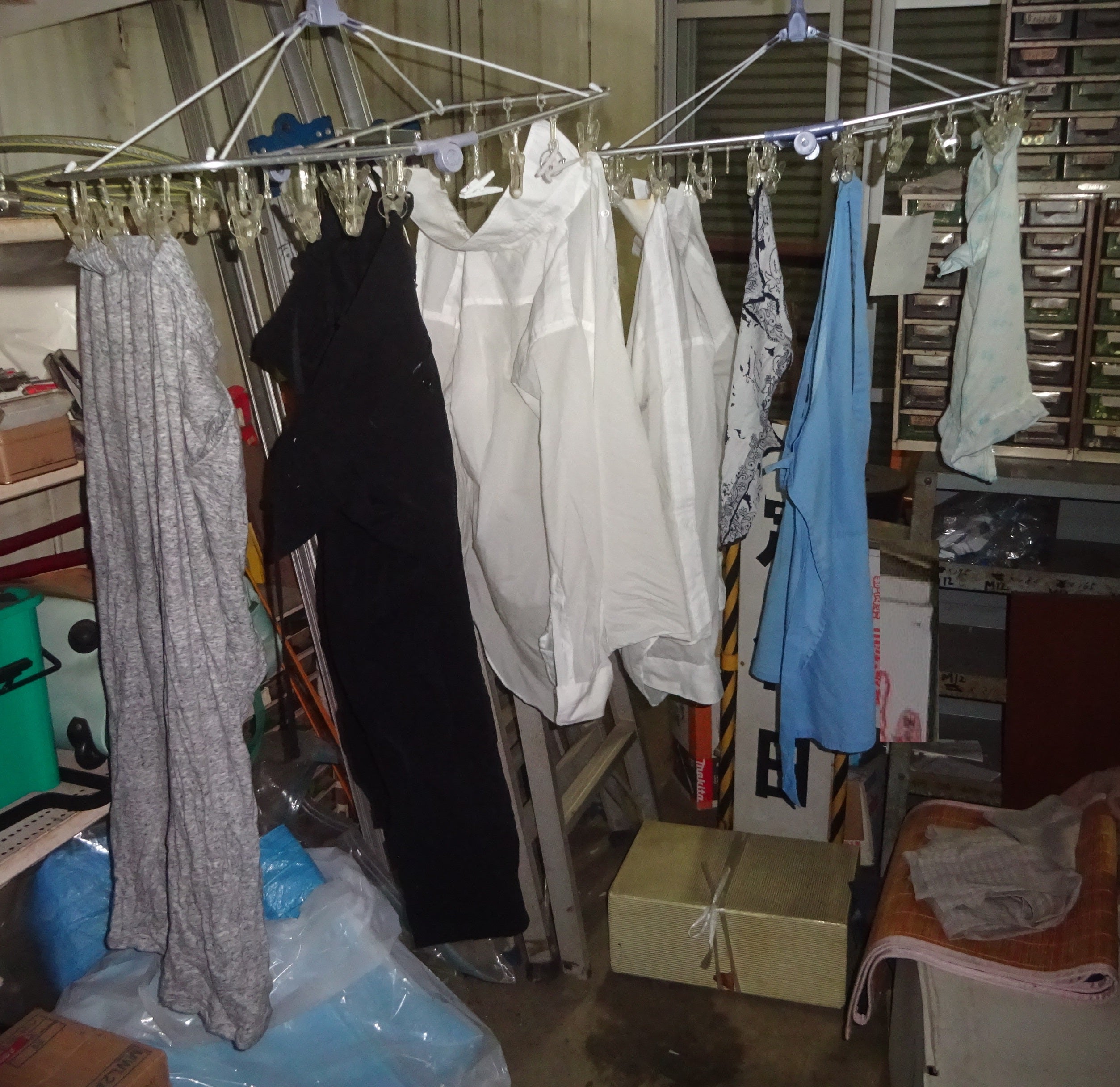 上記のように 屋内で 陰乾しすることになった洗濯物