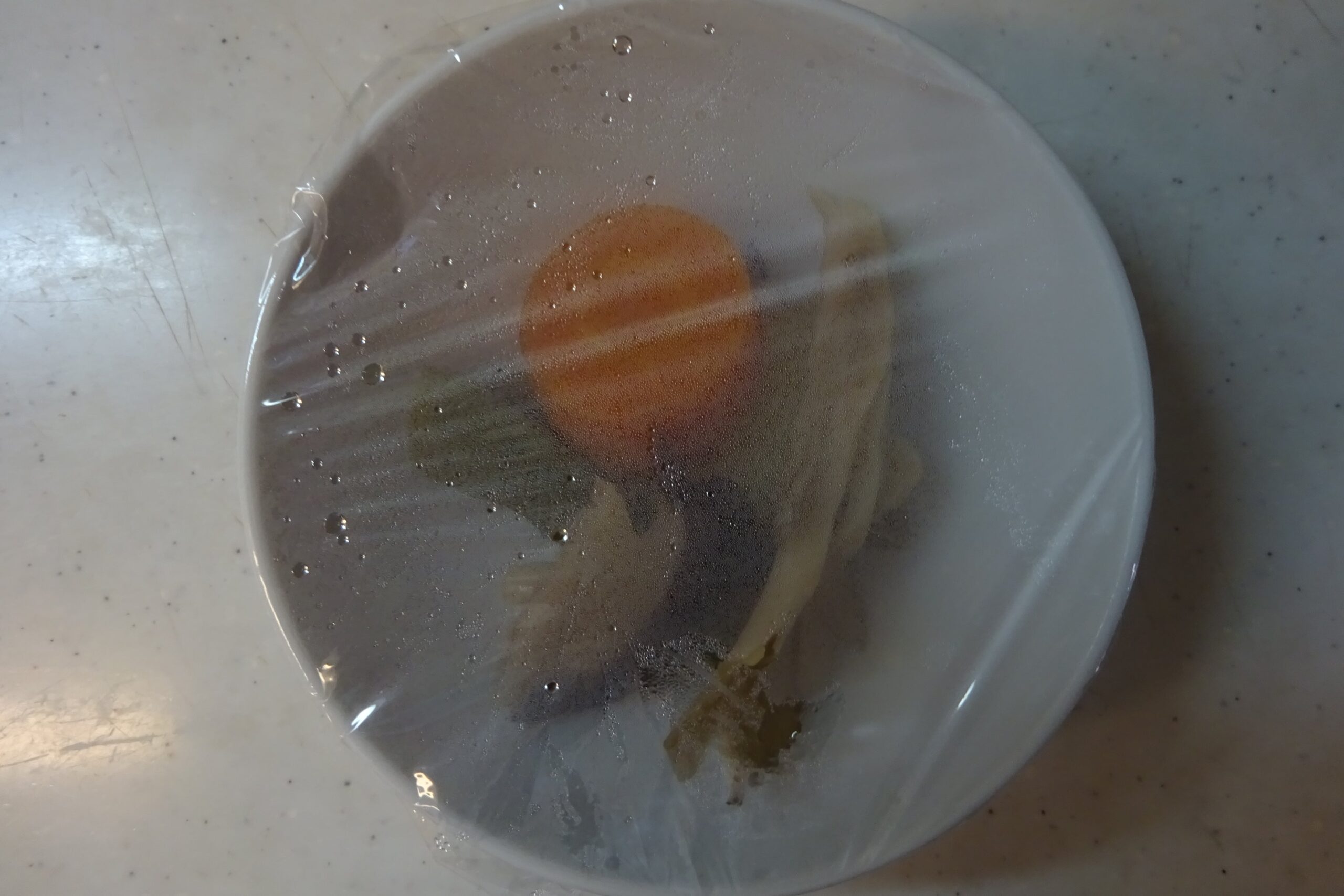 父親の朝食の一部(その上の画像の 父親の朝食の一部から 料理の品目が増えています。食べ掛けています)
