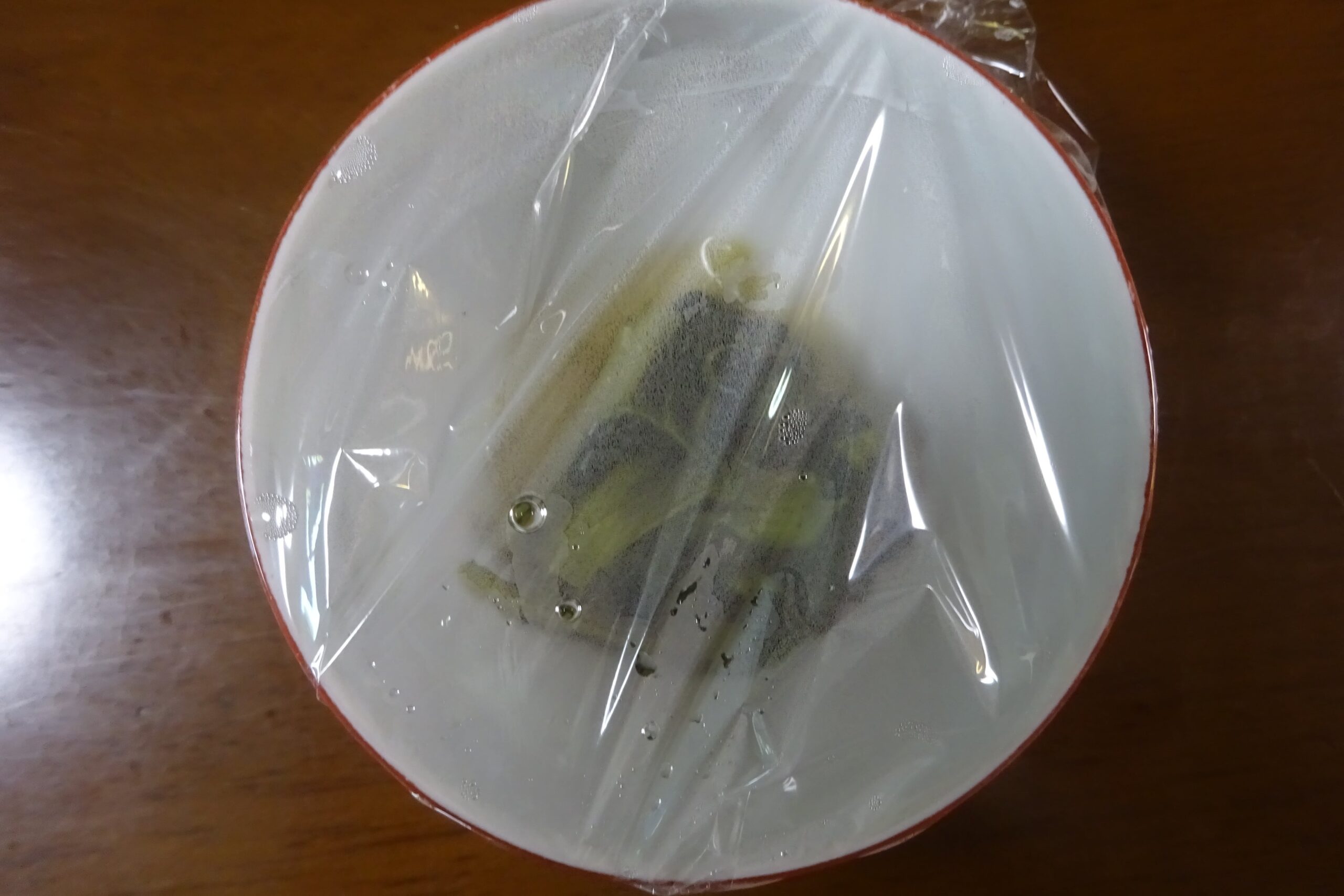 父親の朝食の一部(父親が 前日 寝られなくて 食欲がない と言うので、少しずつ 料理の品目を出しています)