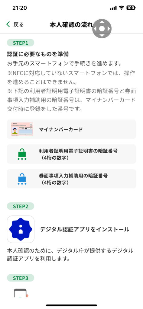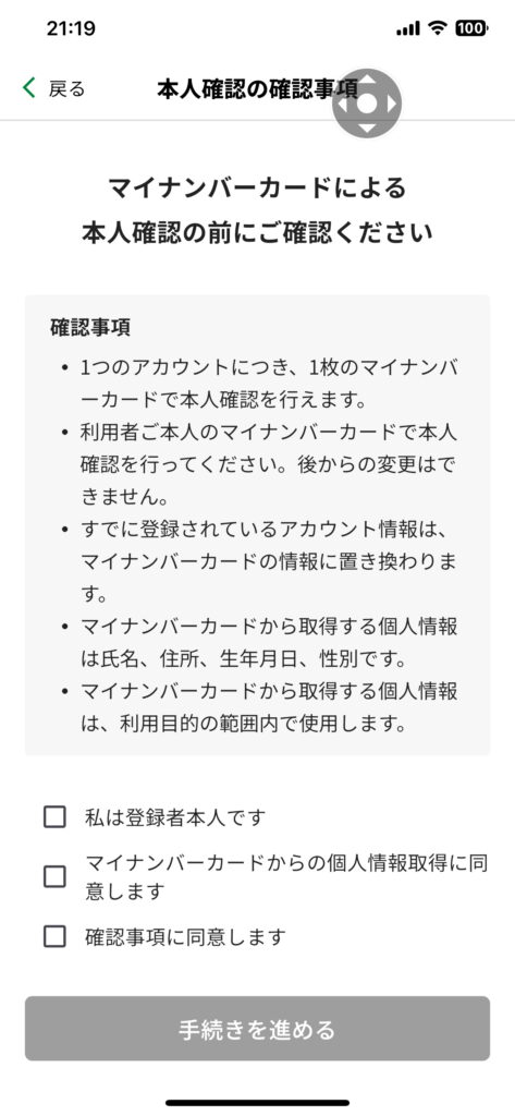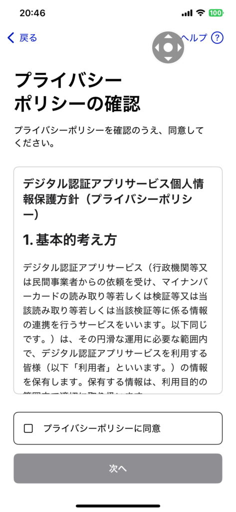 また、「東京都公式アプリ」に戻ります。それで、マイナンバーによる 本人確認を行ないます。