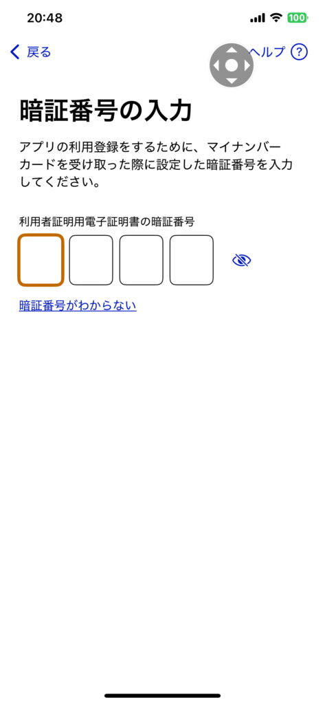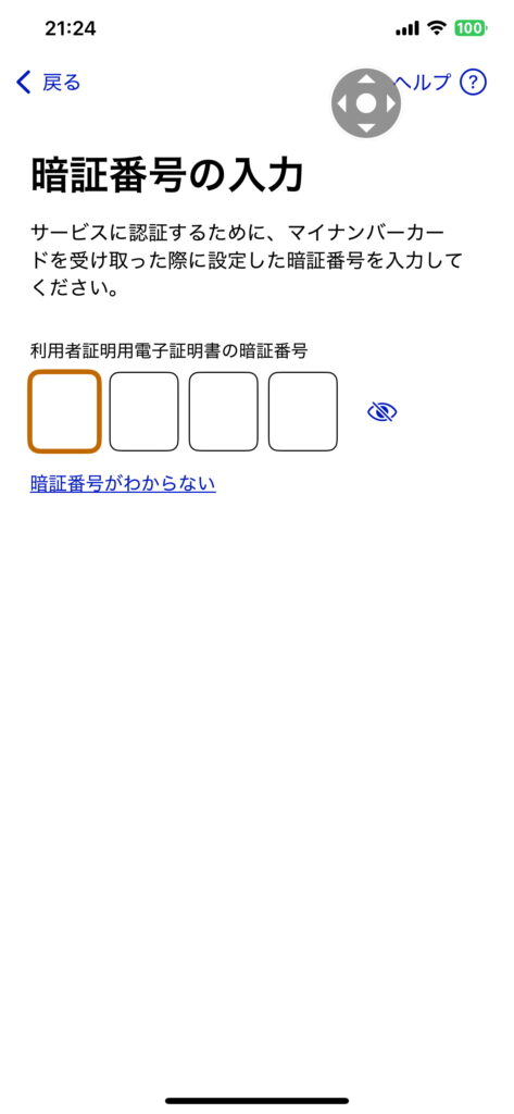 利用者証明用電子証明書の暗証番号の入力