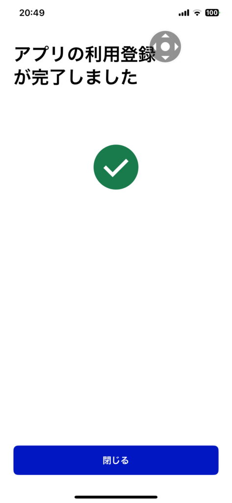 アプリケーションの利用登録の完了