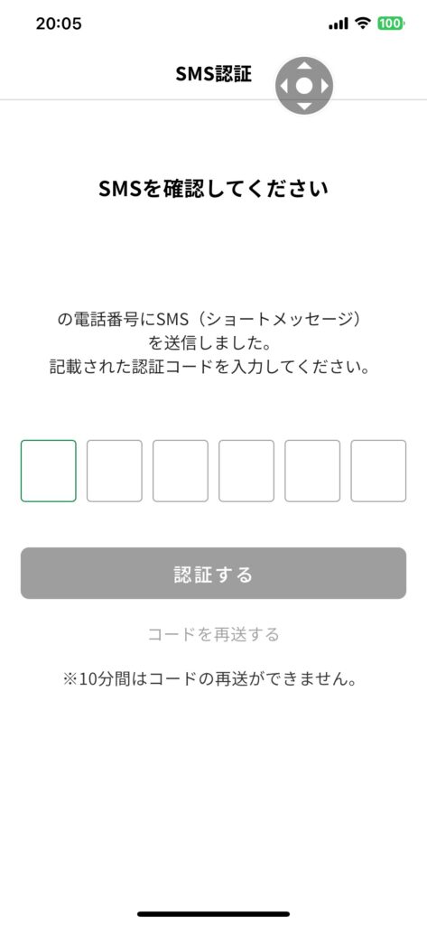 電話番号に送られてきた6桁の認証コードを入力し、 認証する ボタンをタップします