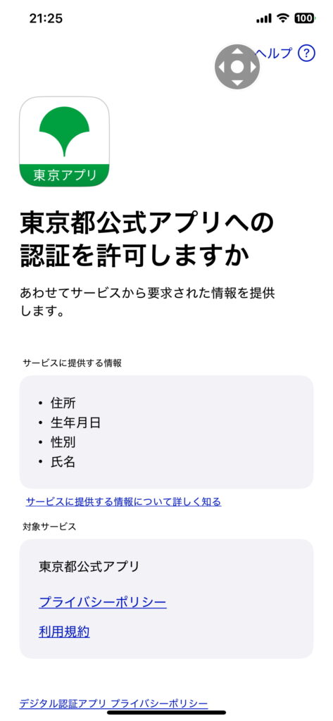 東京都公式アプリへの認証