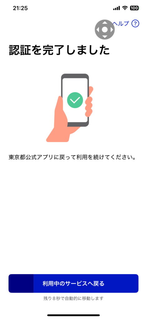 ときに、東京都公式アプリのホーム画面に戻ってくることで 作業は完了です。ちなみに、このブログを作成しながら 上記の認証を行ないましたので、約3時間半が かりました。