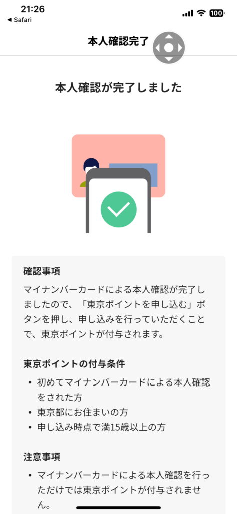 マイナンバー カードによる 本人確認を行なっただけでは 東京ポイントが付与されません