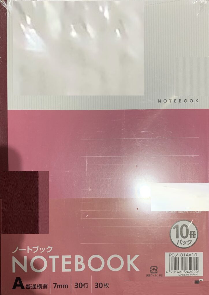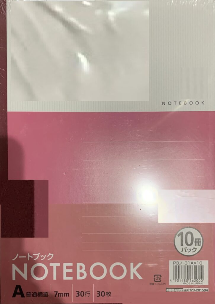 誠に有り難いことに、届いた ノート 30冊(日本製)入りを 2パック(誠に遺憾なことに、上の画像の右上のように ビニール袋が破れています)