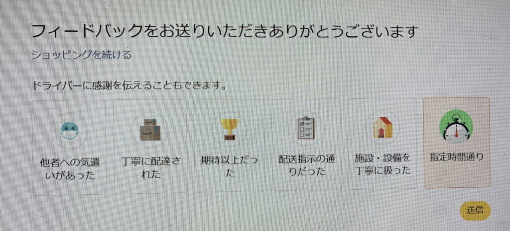 の100%ジュースを 冷蔵庫から出してきて 常温保存のそれと 両方 用意して 選んでもらい 資料を添えて 説明して あげました。因 みに、宅配便から 配送のアンケートが来ました。それで、上記と同じく 「すばらしかった」 と 「問題があった」の二者択一でありました。そこで、それらの二者択一でありますので、「すばらしかった」に致しました。なお、前回迄は、「問題があった」ではなく 「それほど すばらしくなかった」でありましたので、尋ね方が変わりましたね。