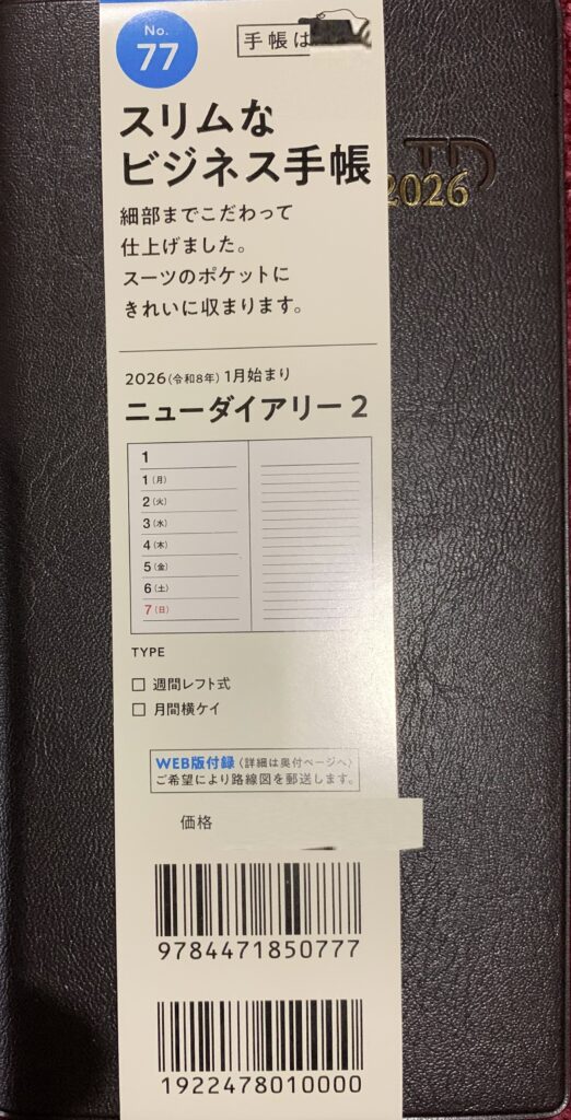 毎年 定番の手帳(今年から 郵便料金 値上げの為か、アンケート返送用の葉書を入れなくなりました。因みに、昨年迄 は 10数年以上 毎年 その葉書を返送していました。しかも、路線図も入れなくなりました)
