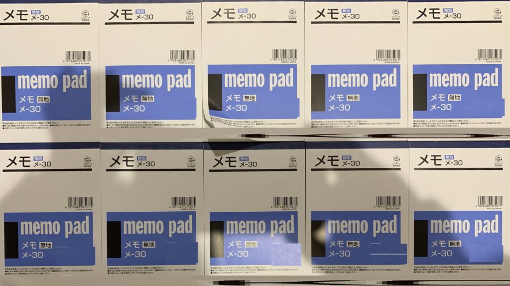 誠に有り難いことに、届いた 商品(環境の 為に 再生紙を用いた メモ用紙 10冊[日本製]。因みに、誠に遺憾なことに、上の画像のように 表紙の 歪み や 傷が確認できます)