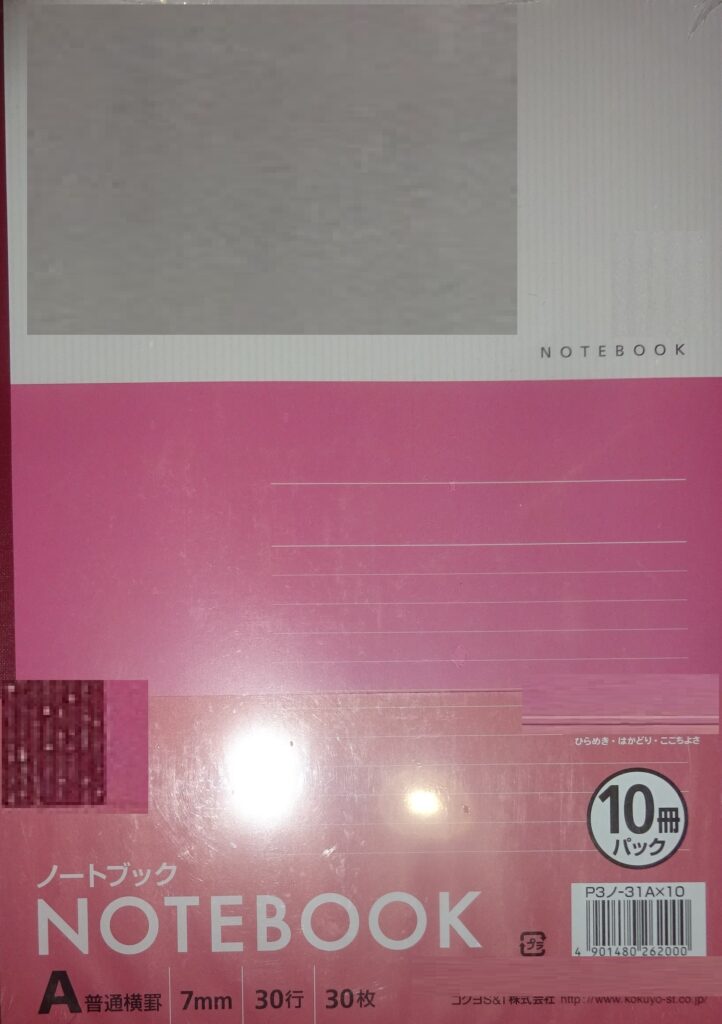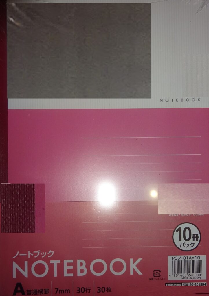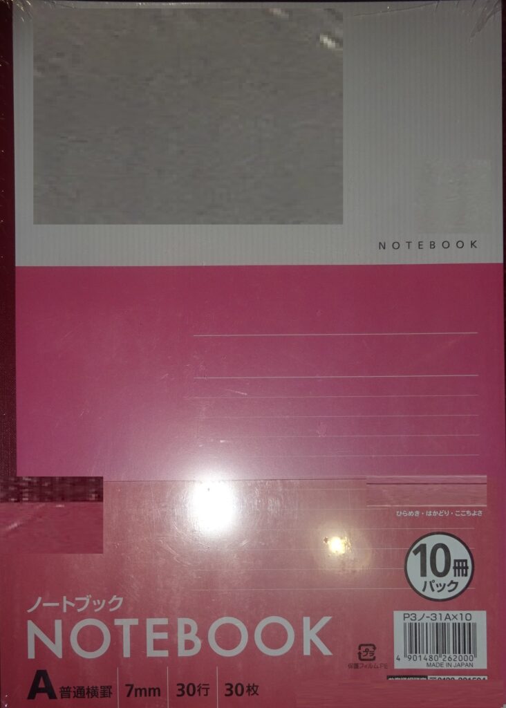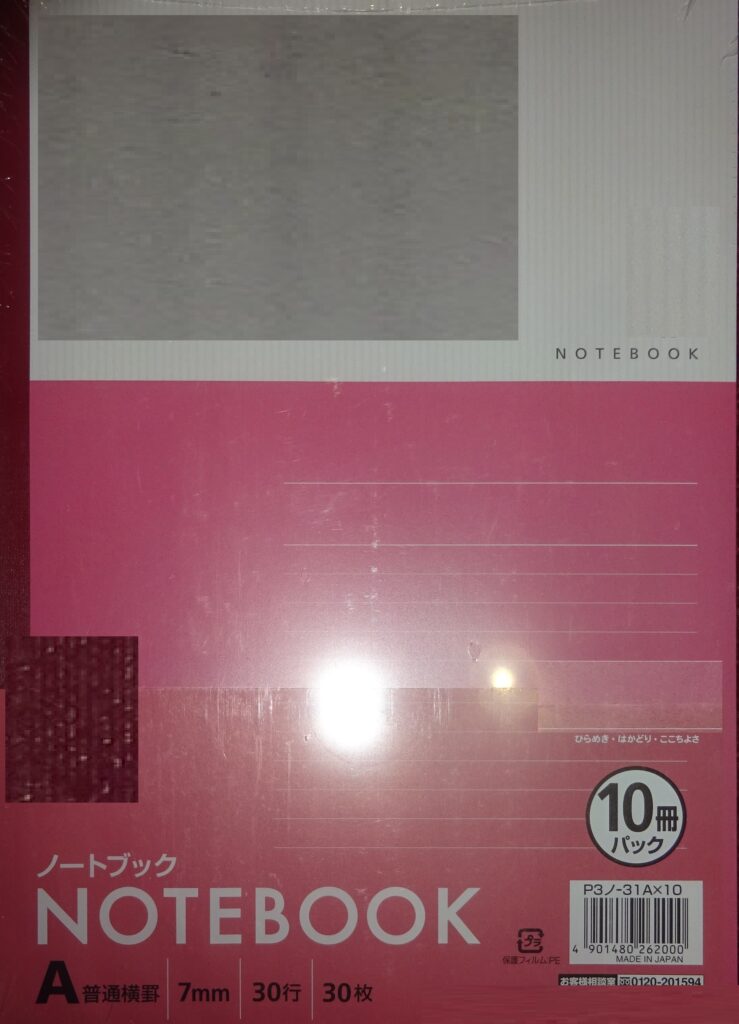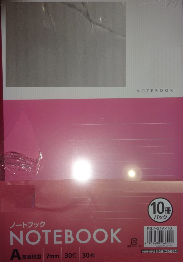 誠に有り難いことに、届いた ノート 30冊(日本製)入りを 3パック(誠に遺憾なことに、上の画像の右上のように ビニール袋が破れています)