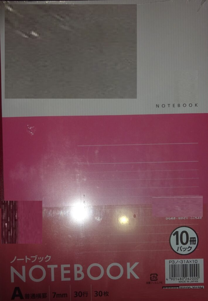誠に有り難いことに、届いた ノート 20冊(日本製)入りを 2パック(誠に遺憾なことに、上の画像の右上のように ビニール袋が破れています)