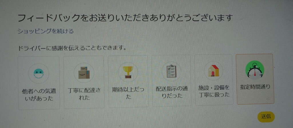 【すばらしかった】 と 【問題があった】の二者択一のアンケートに回答した後の画面