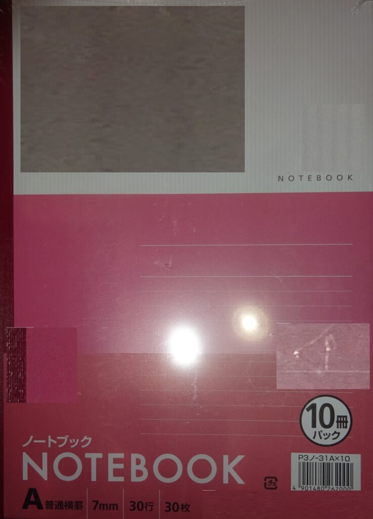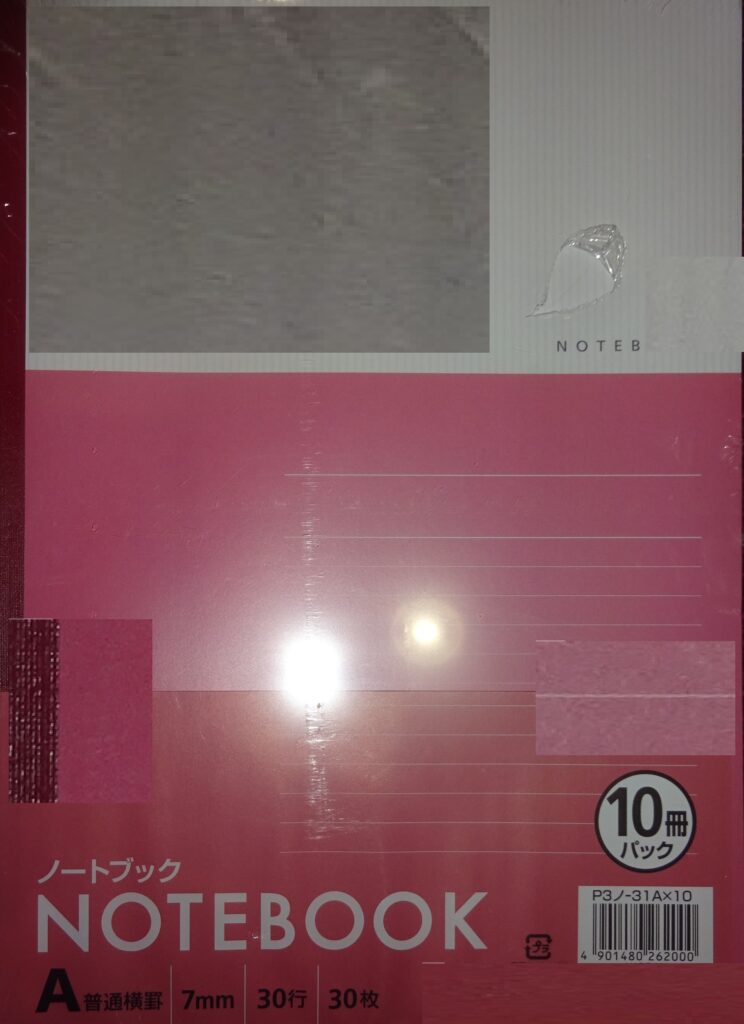 誠に有り難いことに、届いた ノート 30冊(日本製)入りを 3パック(誠に遺憾なことに、上の画像の右上のように ビニール袋が破れています)