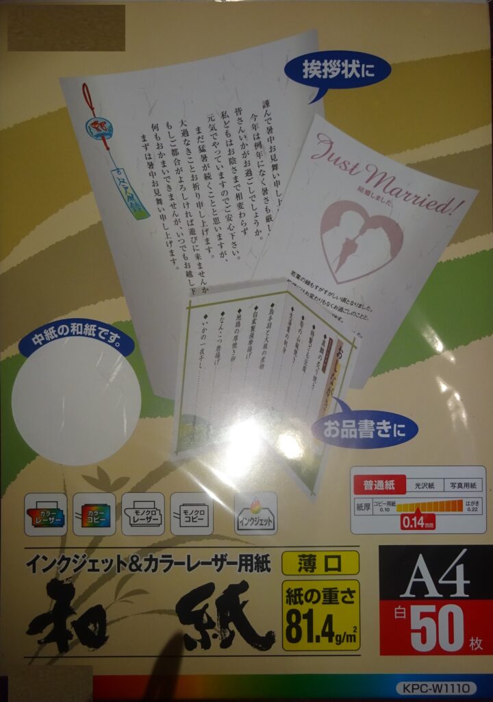 コピー用紙 カラーレーザーインクジェット和紙 薄手 2束(誠に遺憾なことに、前々回 すなわち 去る4月16日の 1束 ¥794円から ¥1,294円に値上がりしていました。ところが、翌日になりましたら、¥973円に値下がりしていました)