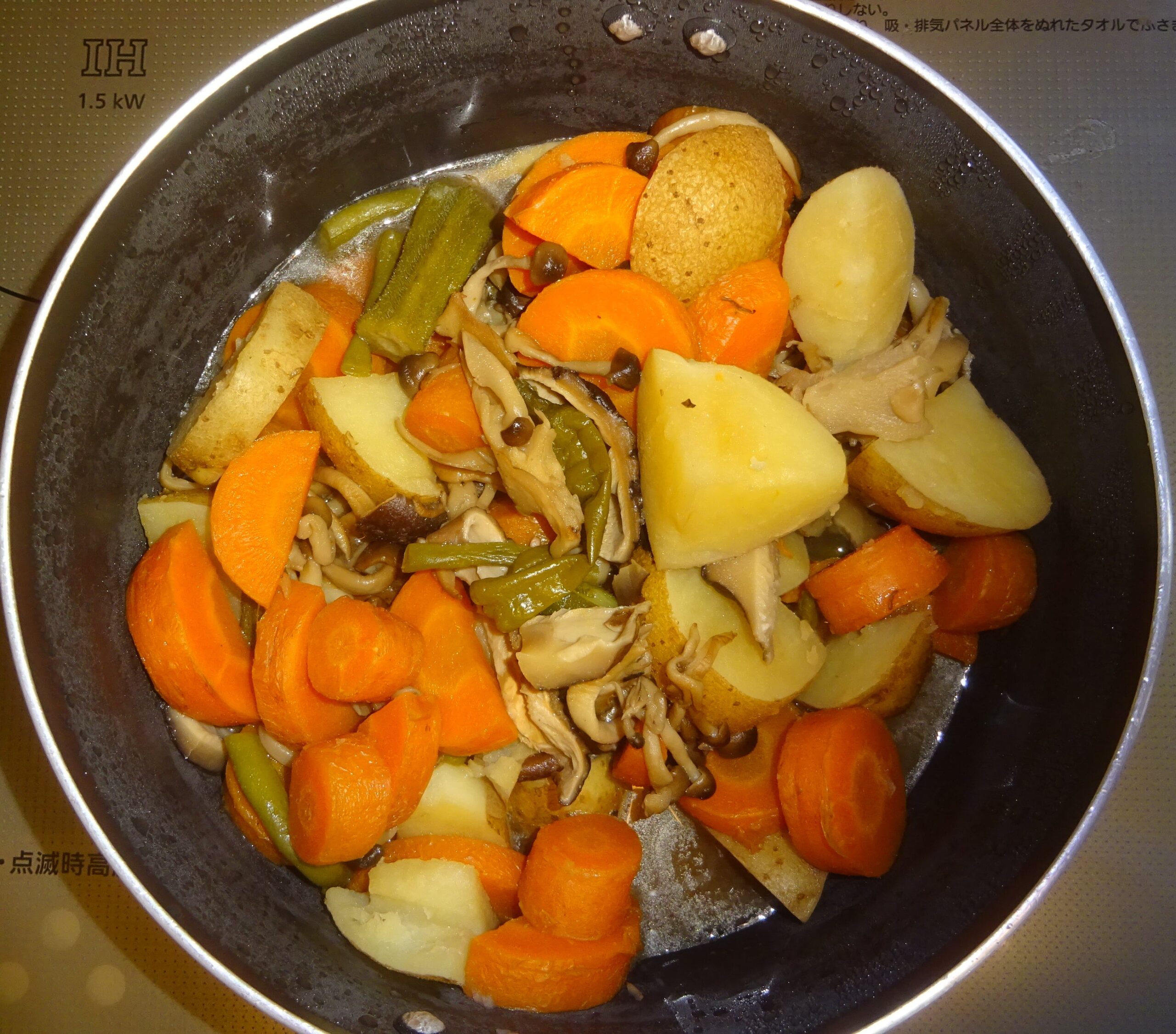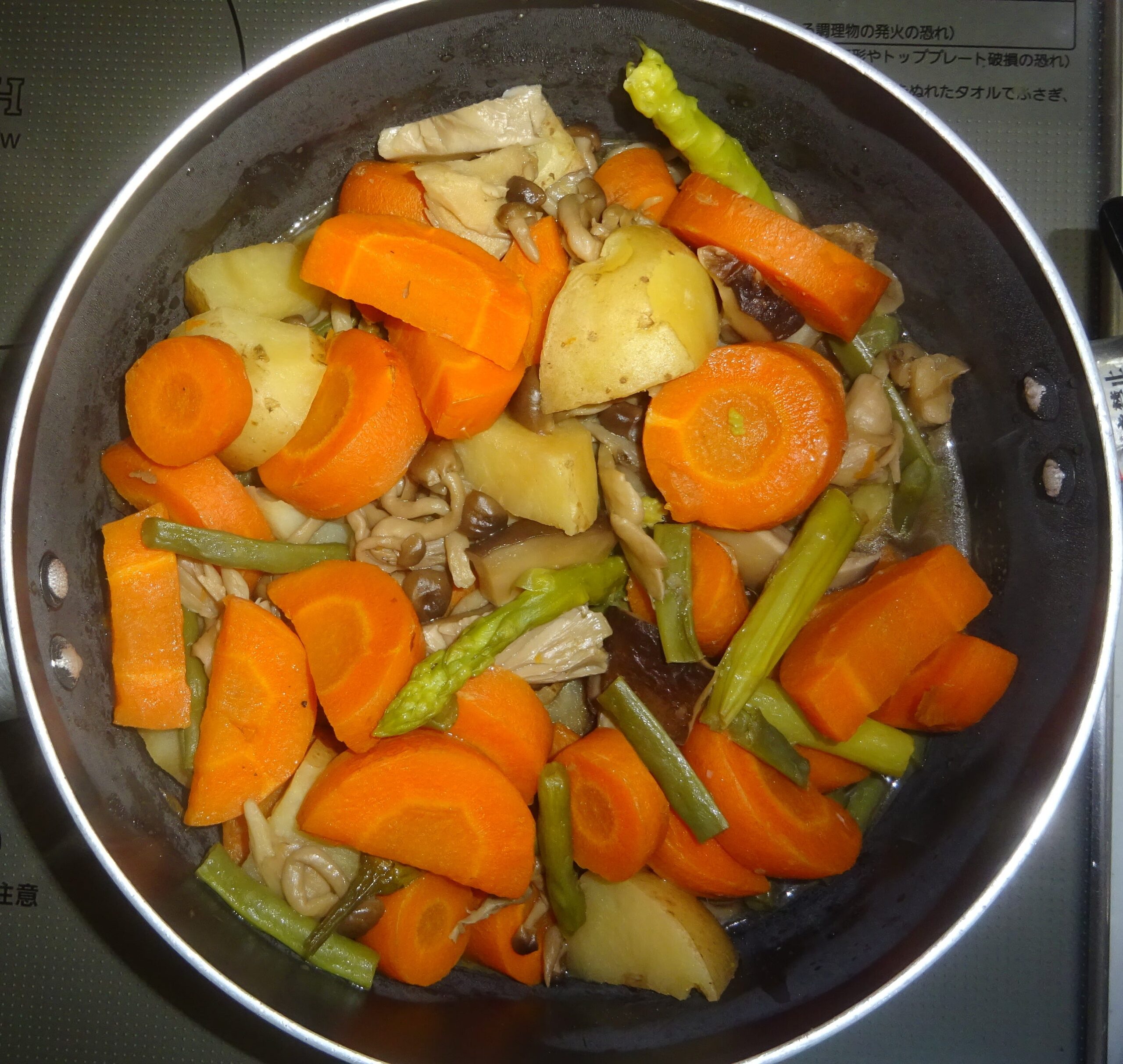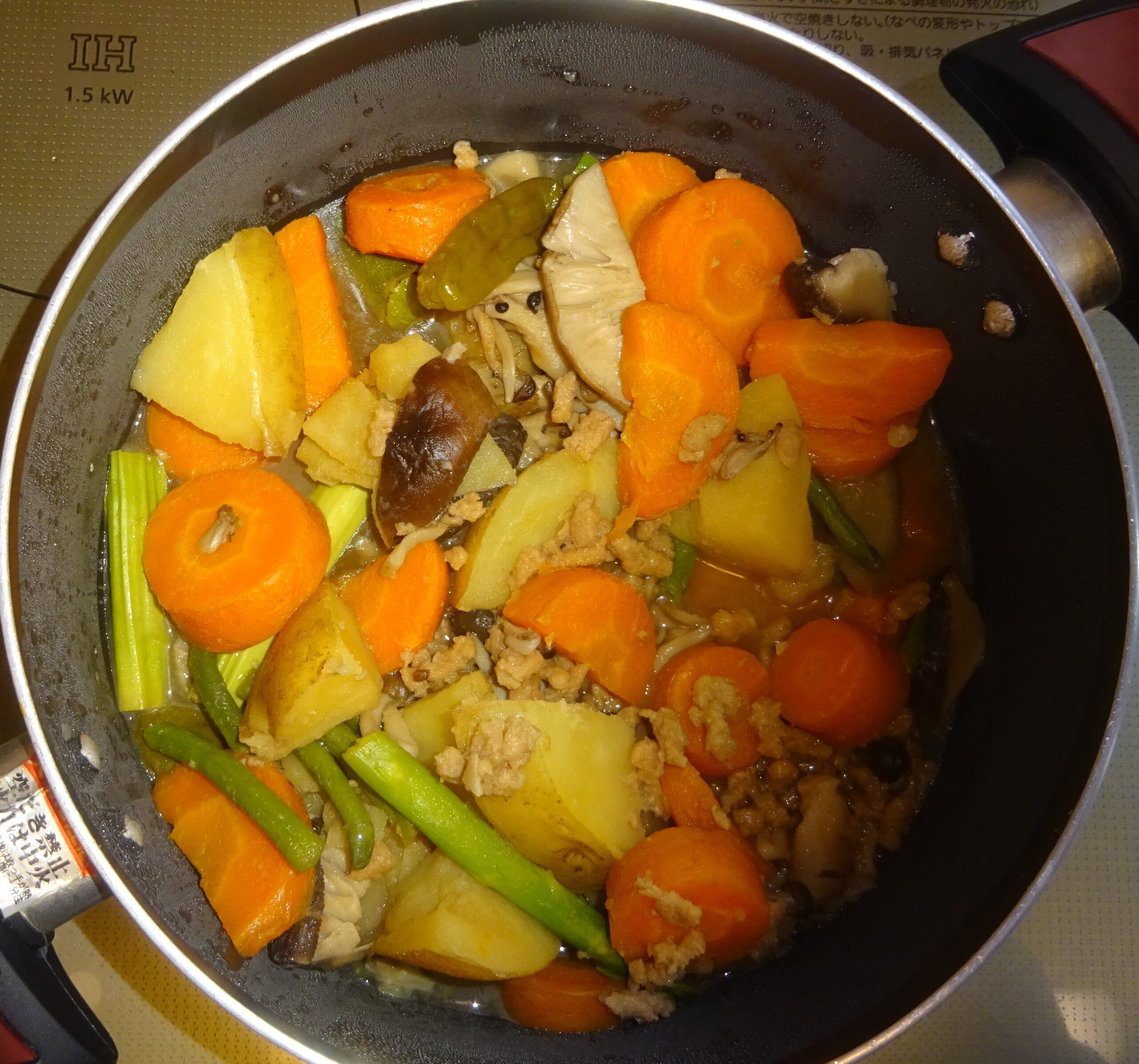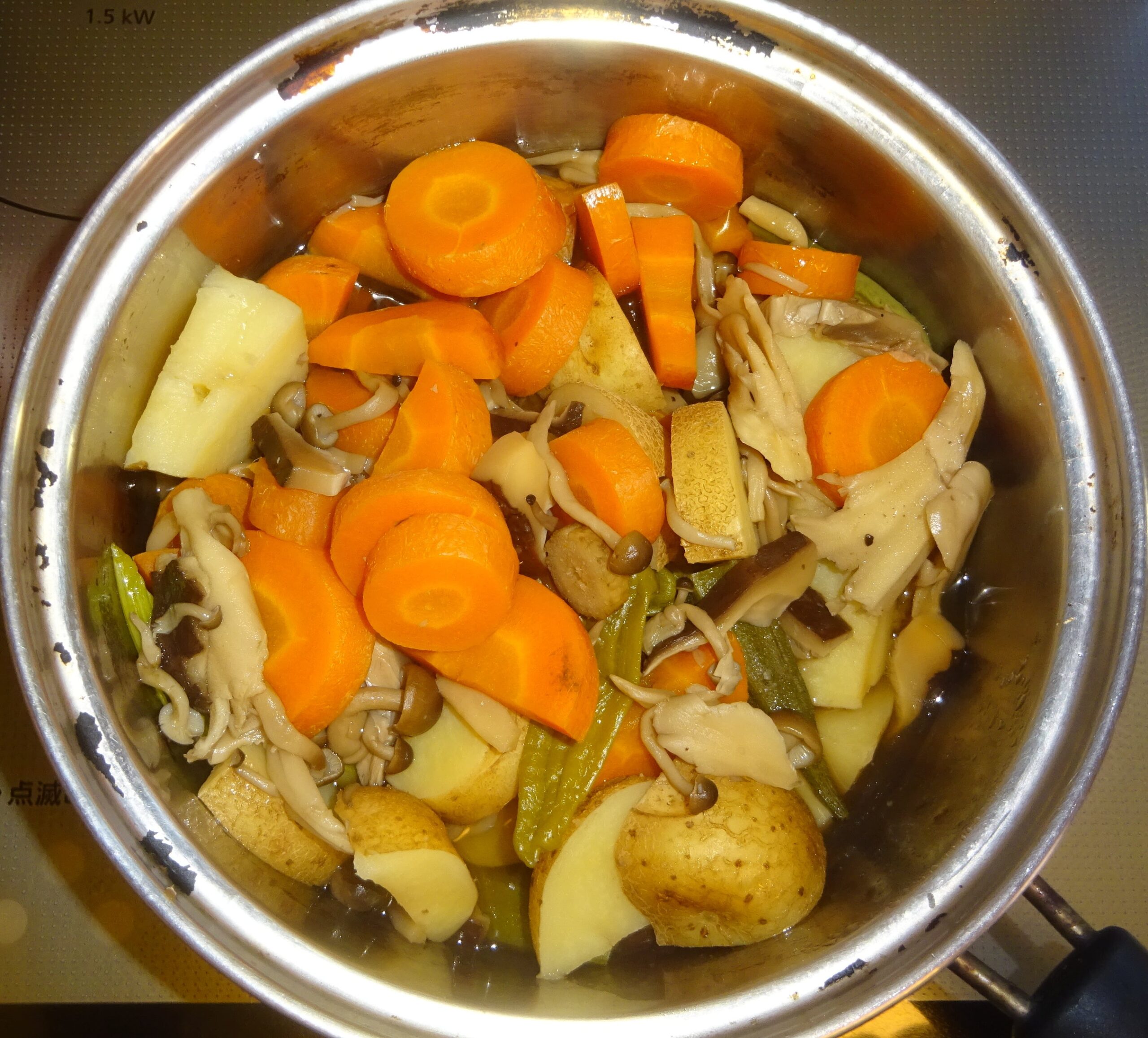 なお、去る 一昨年の5月29日(水)の「鰻の蒲焼・329(カレーうどん・父親の食事)」のブログの下段に、「(前略)昨日 すなわち 5月28日(火)の『鰻の蒲焼・328(カレーうどん・父親の食事)』のブログの下段に、『(前略)但し、人参そのものが持つ 脂質があることが、約12年前 すなわち 平成19年の8月の学会で発表されました。 因みに、人参の脂質は、人参1kg当り 1gと 非常に少量ですが、カロテンの吸収力を アップさせる力があります。すなわち、加熱することで 脂質が カロテンに触れ、カロテンが 脂質に溶け、吸収されやすい形になっていることが分かりました。(後略)』と記させて頂きました。すなわち、人参には 自らの脂質があり 熱を加えることによって カロテンが そこに溶け出し 吸収率を上げてくれるので、余分な油は要らず むしろ それは 中性脂肪の増加に繋がることになります。また、100℃では カロテンの量に変化は ないのですが、200℃になると 熱で カロテンが壊れるので、高温の炒め物より 煮物のほうが 吸収率が上がり 健康的 とされています。(後略)」と記させて頂きました。なお、煮るのに 時間が掛かる 人参 そして 椎茸などを 先に茹で始めて、後から 煮崩れを起こし易い 馬鈴薯 や 早く 茹で上がる青物などを入れて 煮るようにしています。序で乍ら、家政婦が煮た 人参が 硬かったのです。それで、家政婦によりますと、人参は 内側が 柔らかくて、外側が 硬いとのことでした。そこで、内側を 箸で刺して 煮えたかどうかを調べたのであるが、外側が 硬かったのが 分からなかったとのことでした。