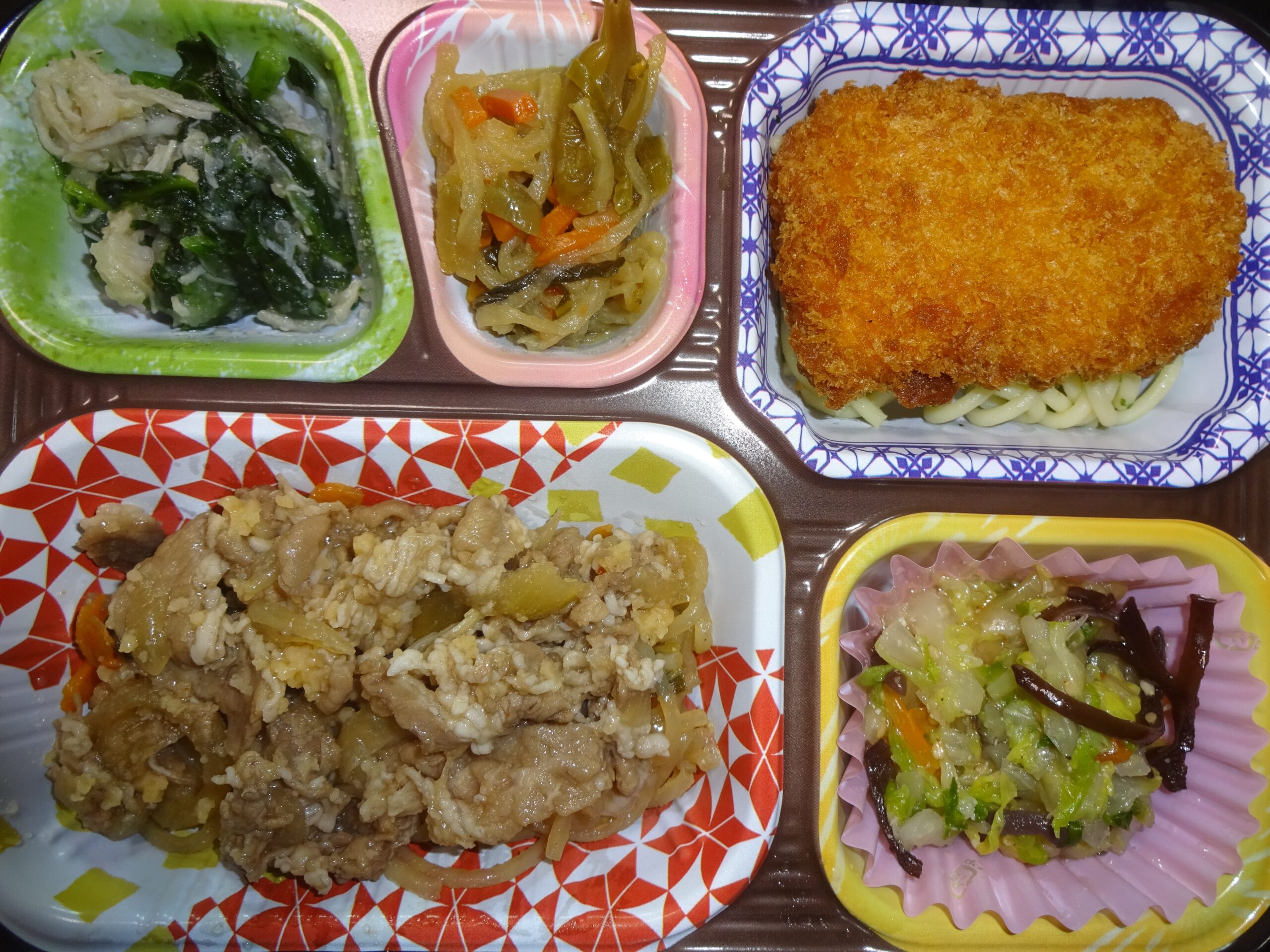 勿論 他 にもありますが、以上などが、父親の朝食 そして 昼食です。朝食も 昼食も、おかずの内容は ほぼ同じです。それから、宅配食の おかずの配達が、週7日間コースと致しまして 入って来ます。なお、母親によりますと、病人食のようである とのことでした。それで、「カロリー や 塩分などの計算がなされているのでありましょう。」と回答しました。