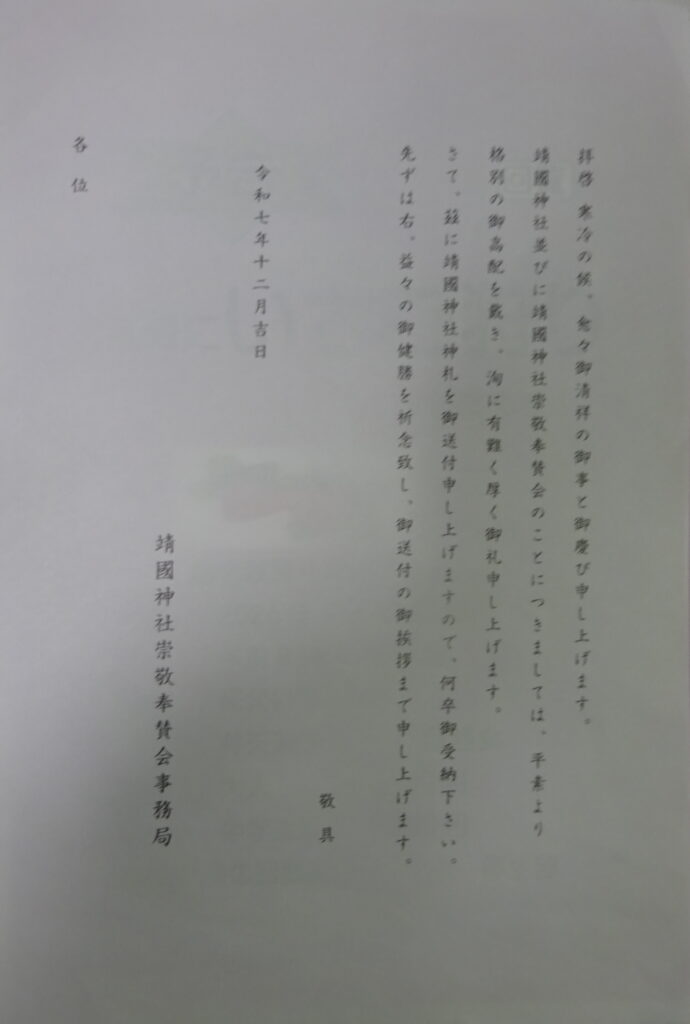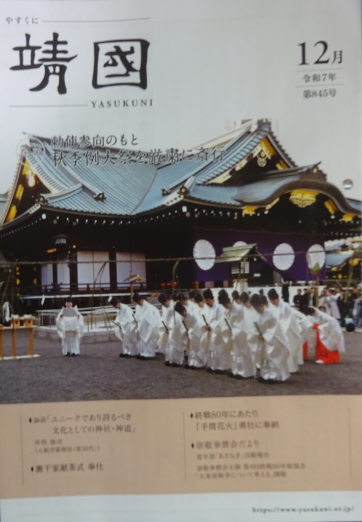 「(前略)去る10月7日(火) の『靖國神社(令和7年10月)』のブログの中段やや下に、