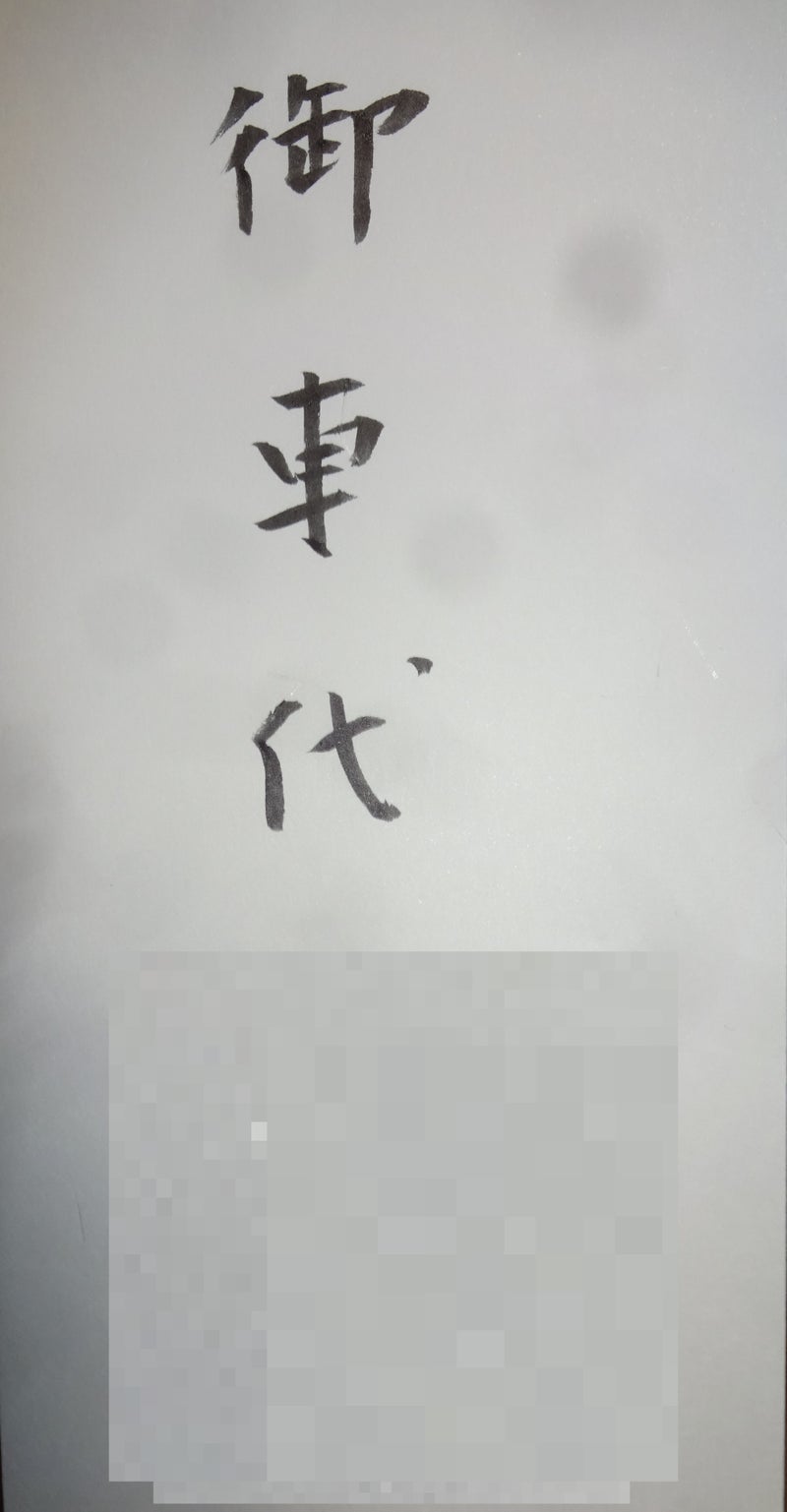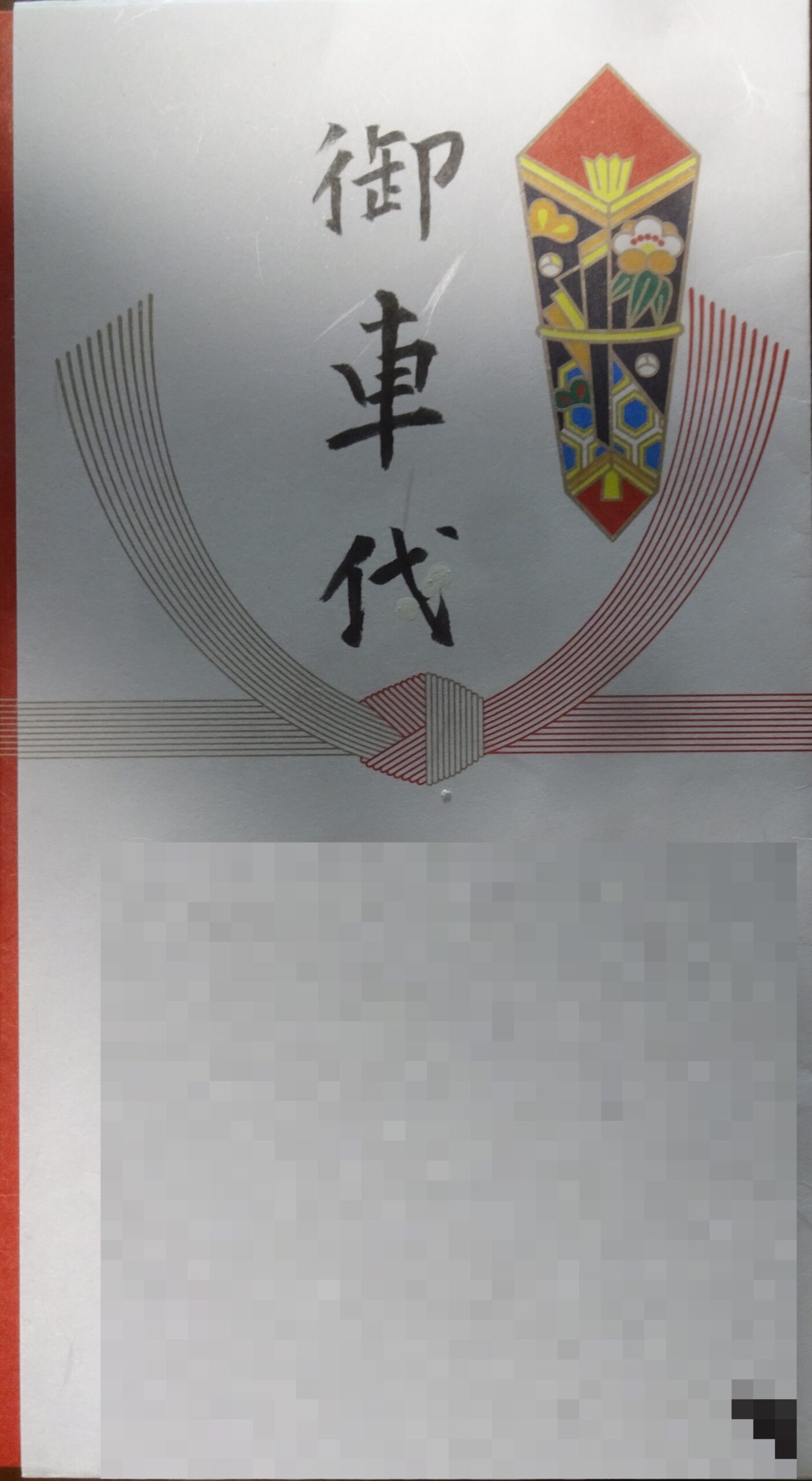 (後略)」と記させて頂きました。そして、今回も、このように 金1万円の お車代を用意しました。