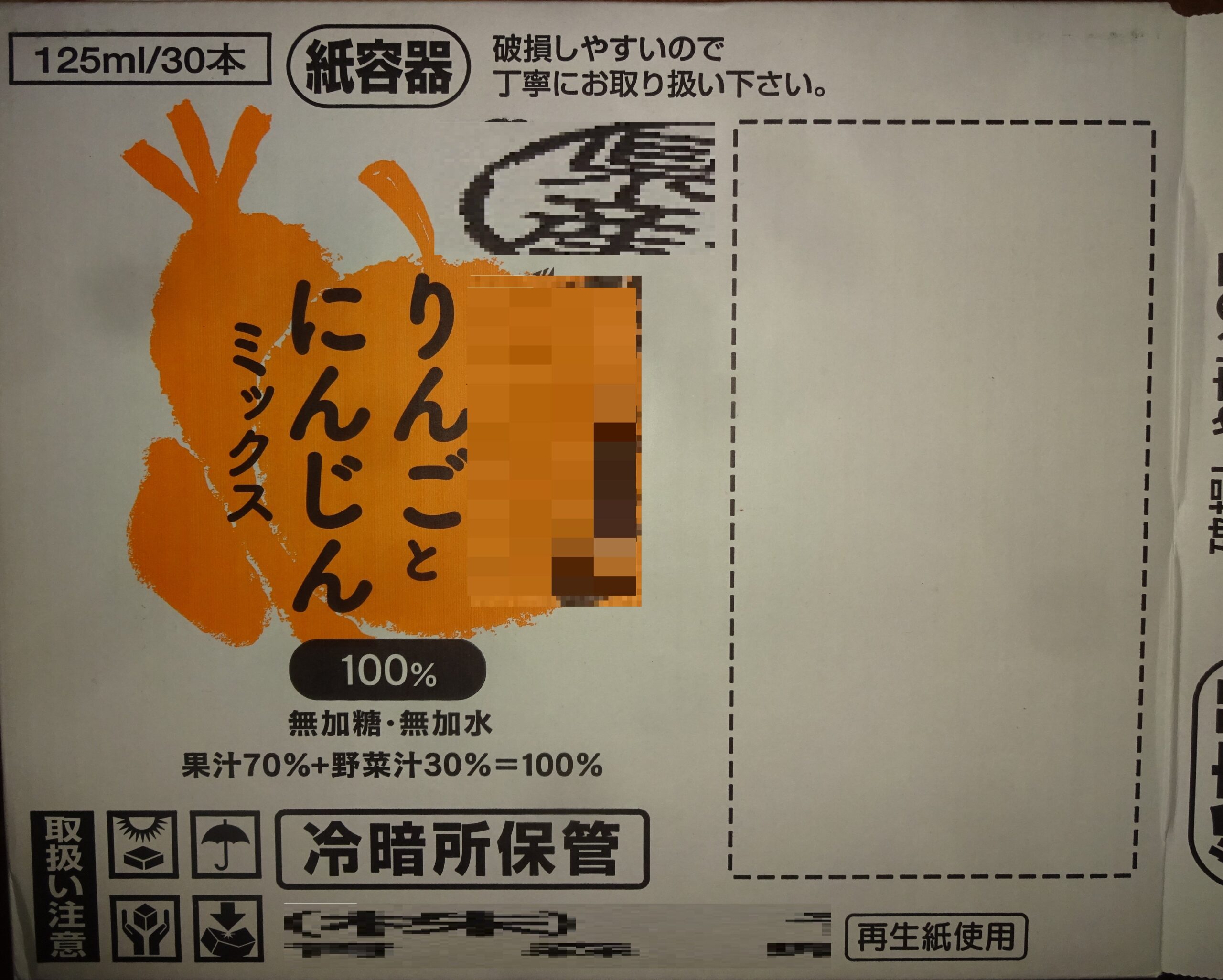 の100%ジュースも 持って帰ってもらいました。(後略)』と記させて頂きました 人参が含まれた りんご